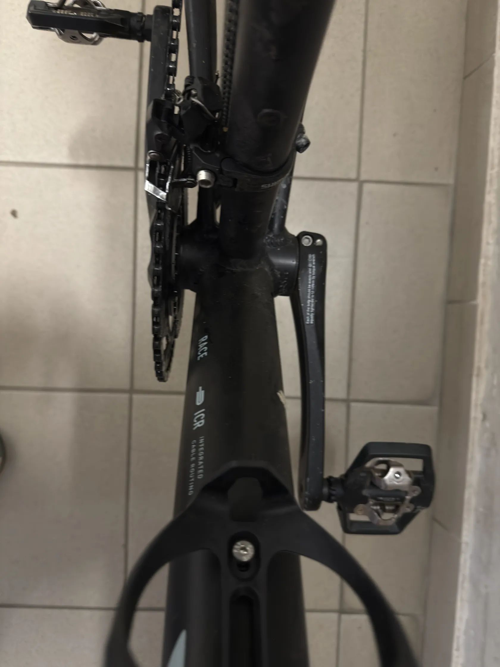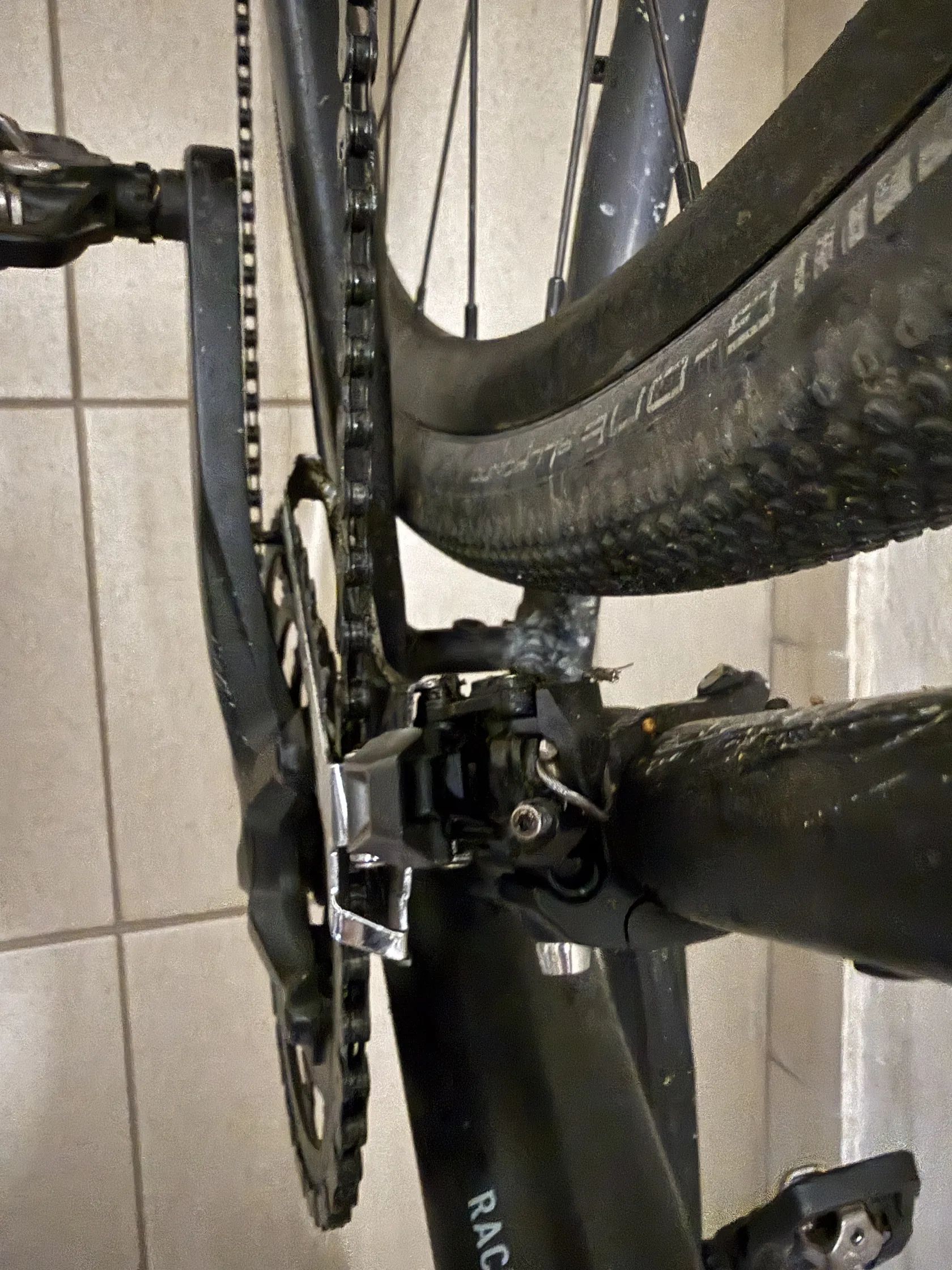 Kolo je bez velkých škrábanců, jediný větší šrám je po předchozím majiteli na pravé přední páčce brzdy, kdy s kolem spadl v době zastavení na silnici.