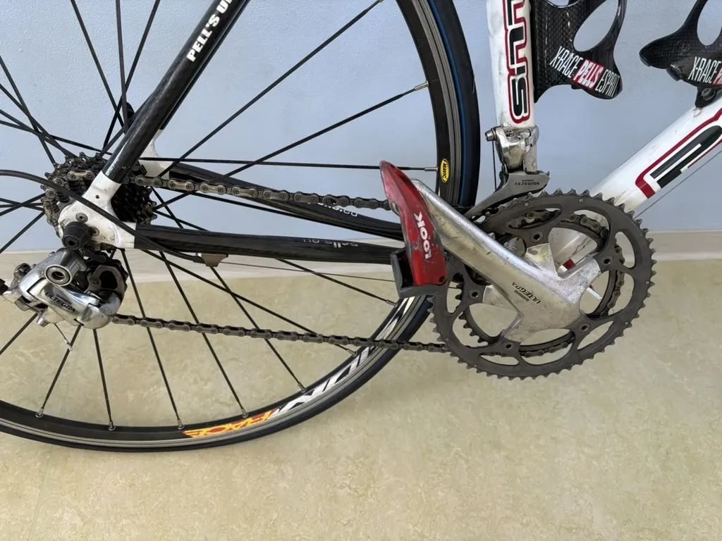 Super silniční kolo se skvělou výbavou, staršího data. Vhodné na postavu 175-185 cm. Komplet Shimano Ultegra, přední a zadní stavba carbon. Přidám nový řetěz, a karbonové tretry vel. 44 s pedály Look. Karbonové řídítka, sedlovka Pells. Možno vyzkoušet, cena k jednání.