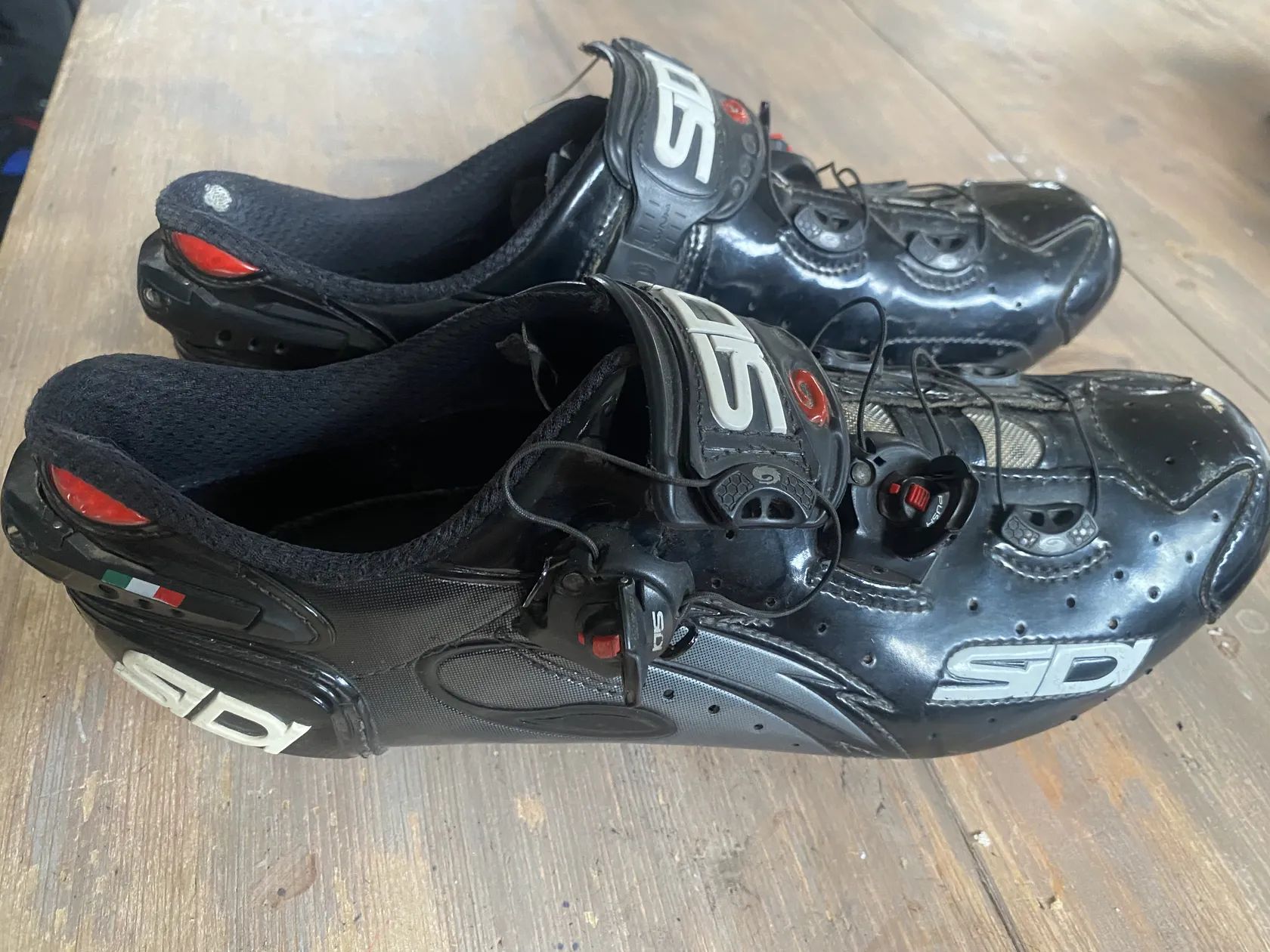 Silniční tretry SIDI, délka stélky 26, karbonová podrážka, stav dle foto - dost použité,ale na začátek ještě poslouží..