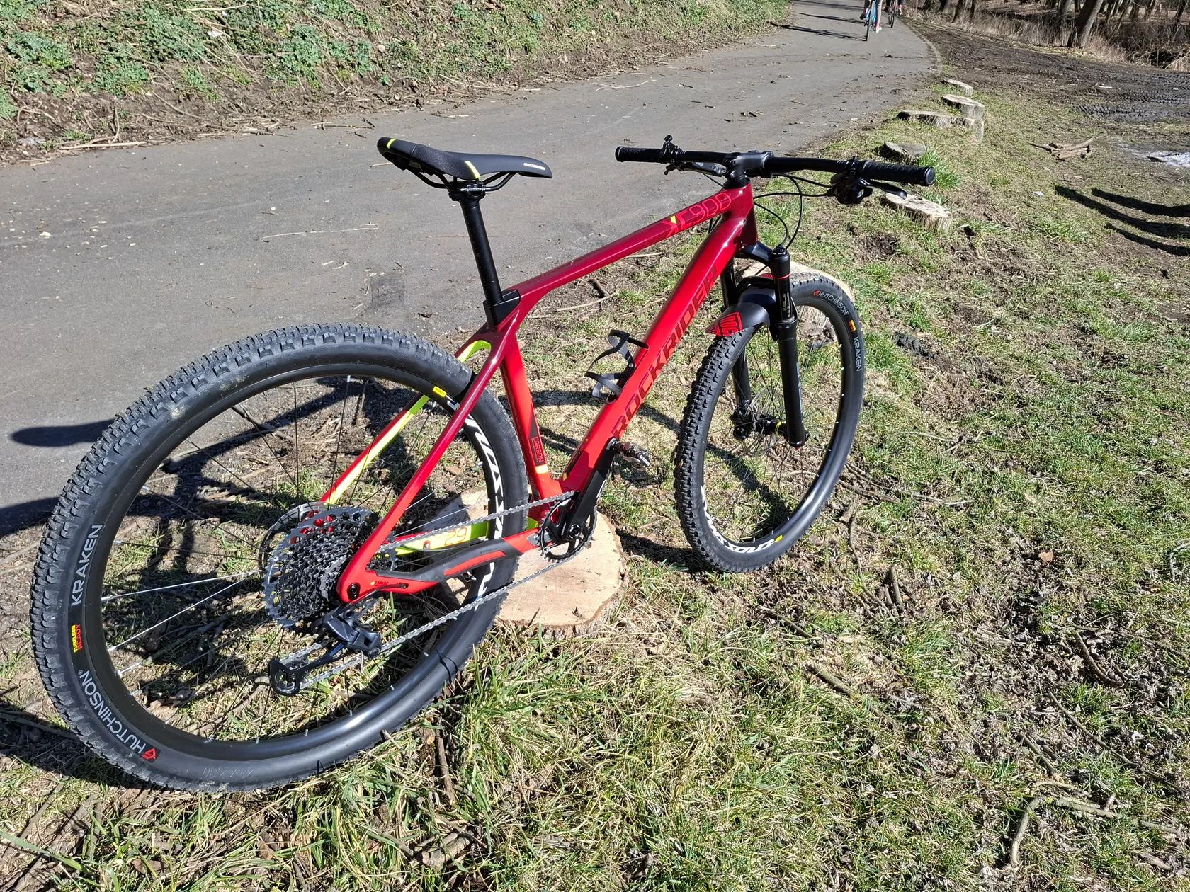 Základ Typ: horské XC (cross-country) Kola: 29" Hmotnost: cca 10,5 kg (23.1 lbs) Rám: full karbon (~1080 g, vel. M) Odpružení Vidlice: RockShox Reba RL Zdvih: 100 mm Ovládání: dálkový lockout (Combolock) Pohon (drivetrain) Řazení: SRAM GX Eagle (12s) Kliky: Truvativ Stylo Převodník: 34T (možnost 30–36T) Kazeta: SRAM PG-1275 10–52 (520 % rozsah) Řetěz: SRAM Eagle Brzdy SRAM Level T (hydraulické) Kotouče: 180 mm vpředu / 160 mm vzadu Kola a pláště Kola: 29" Pláště: Hutchinson Kraken 2.3" (tubeless ready) Kokpit Řídítka: 720 mm, hliník Představec: 60–90 mm dle velikosti Sedlovka: karbon 27,2 mm Sedlo: Rockrider XC Ergofit
