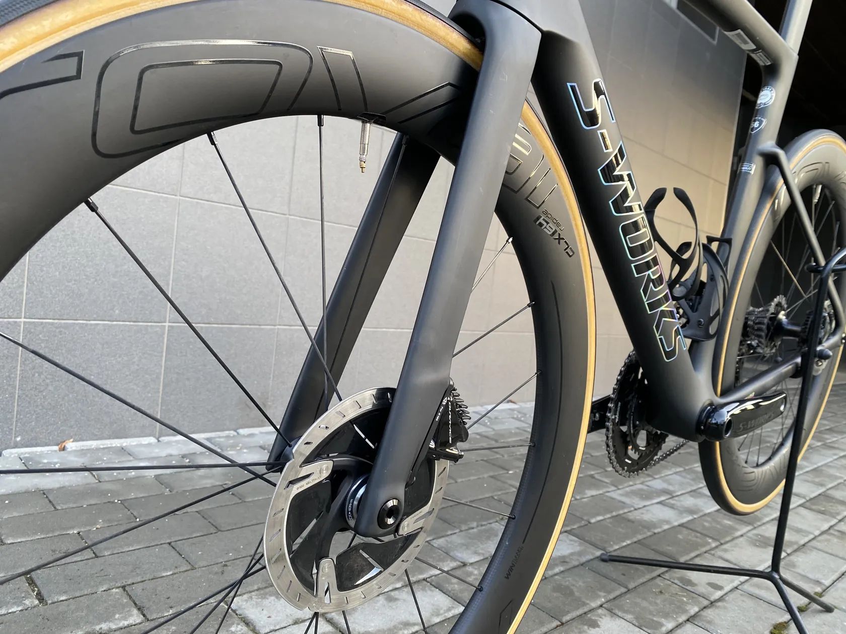 Kola: Roval CLX 64, vysoký aero profil 64 mm, ložiska Ceramicspeed – velmi rychlá, závodní zapletená kola