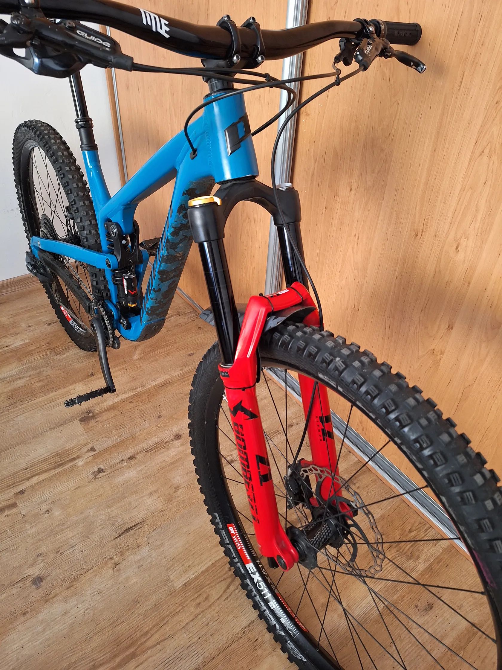 Enduro kolo vel M na 165-180cm, kola 29", 1x12. Vidlice Marzocchi Z1 předalana na pružinu pro hladší chod. Tlumič Marzocchi Bomber CR pružina. Náboje E thirteen, ráfky DT Swiss EX 511, teleskopická sedlovka FOX Transfer, brzdy Guide R. Kolo pravidelně servisované. Ke kolu dám kupní smlouvu