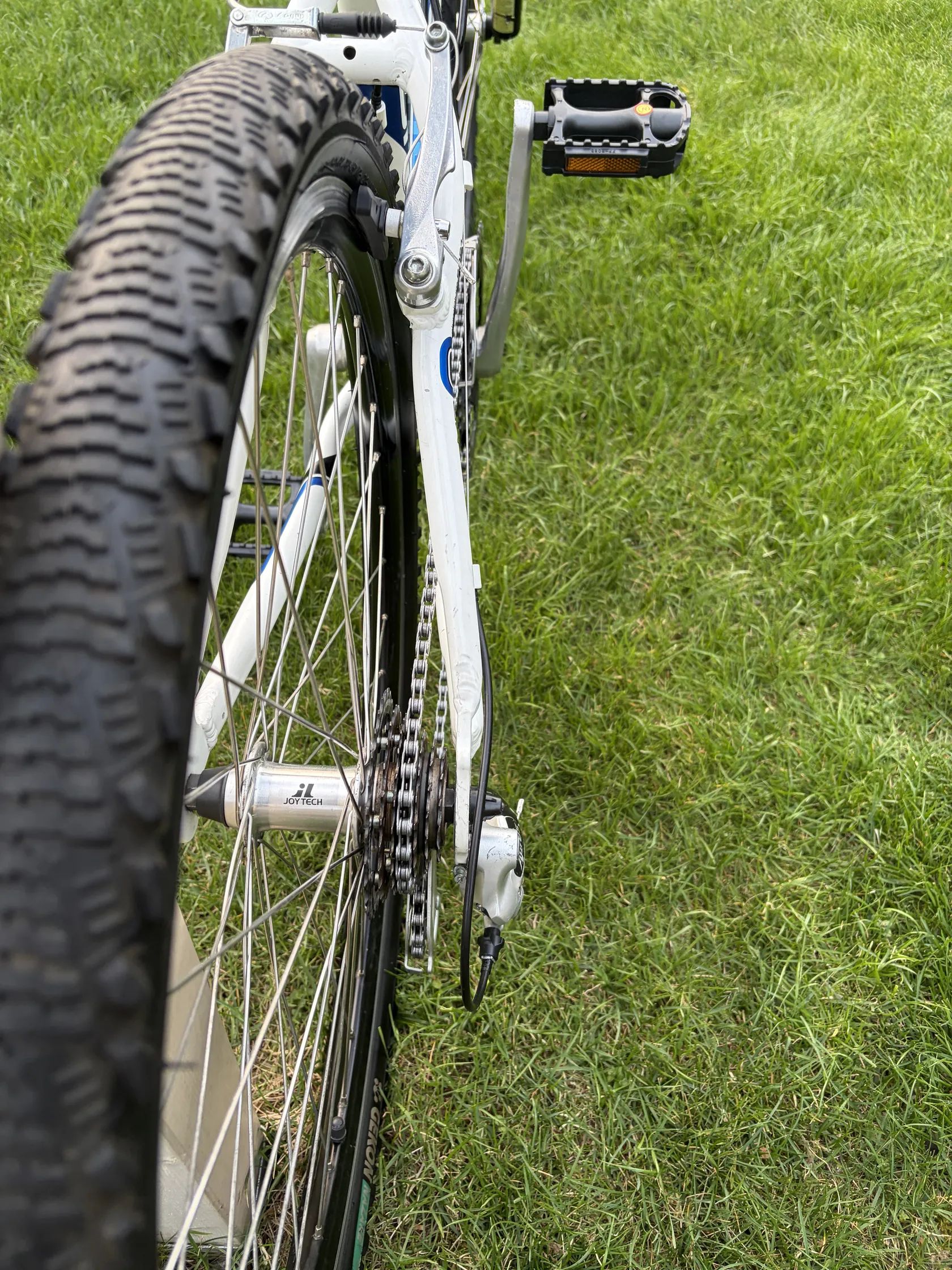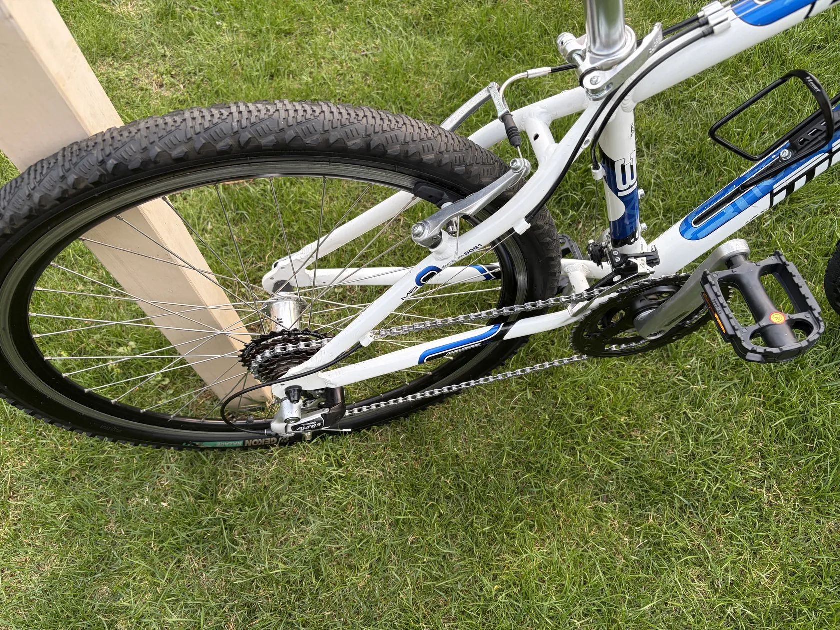 Na laku rámu jsou patrné stopy používání, avšak všechny opotřebené díly jsou vyměněny - řetěz, kazeta, pedály, gripy, sedlo, brzdové špalky, lanka a bowdeny. Vše je vyčištěno, promazáno a seřízeno.