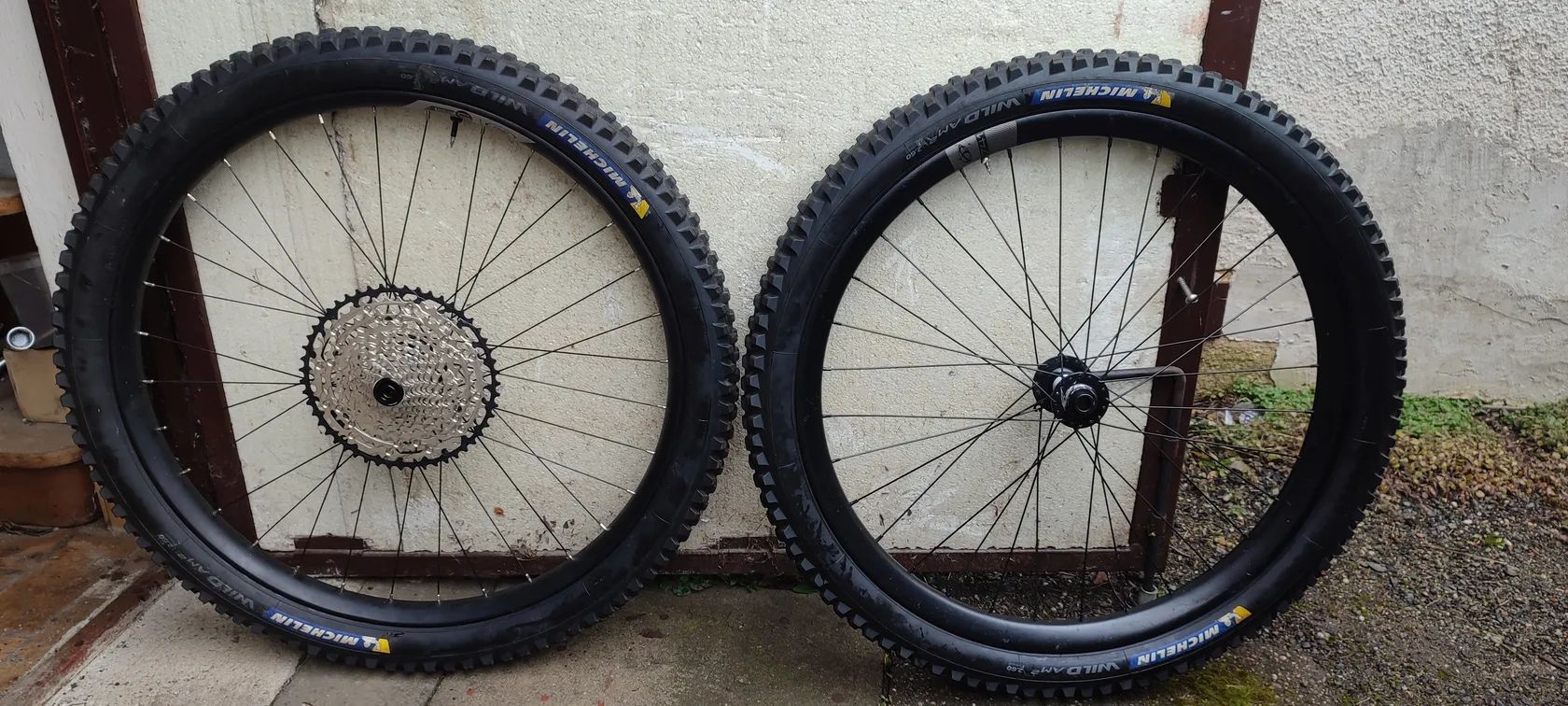 Prodám zapletená kola Ibis. Zadní kolo - nový AL ráfek ibis, náboj Ibis, nová kazeta Shimano SLX, plášť Michelin Wild AM2, přední kolo - karbonový ráfek Ibis,náboj DT SWISS 350, plášť Michelin Wild AM2 (měnil se drát a zůstal nipl uvnitř ráfku, už jsem měl nahozený plášť tak jsem to neřešil. Obě kola jsou bezdušové. Cena 12000kč.