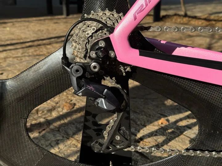 Prodám aerodynamický speciál Ridley Dean (modelový rok 2020), ideální pro triatlon (Ironman, 70.3) nebo časovky. Kolo je známé svou stabilitou při vysokých rychlostech a skvělým přenosem síly. Specifikace: Rám: Ridley Dean, 24-30T HM UD Carbon (postavu 160-172cm) Sada: Shimano Ultegra 2x11 (mechanická) Kliky: Shimano Ultegra 170mm, převodníky 52/36 Kola: karbonová aero kola (loukotě) Pláště Tufo, galusky 700x25c Brzdy: Ráfkové Shimano Ultegra. Sedlo: fizik mistica Přední integrovaná brzda Umístění: Brzda je integrována přímo do přední vidlice pomocí technologie zvané F-Split Fork. Vzhled: Ramena brzdy jsou v podstatě "zapuštěna" do vnitřní části ramen vidlice. Při pohledu zepředu nebo ze strany je brzda minimálně viditelná, protože je krytá aerodynamickým tvarem vidlice. Lanko nebo bovden je vedeno vnitřkem rámu a vidlice, takže zvenčí není téměř nic vidět. Zadní integrovaná brzda Umístění: Zadní brzda je skryta na neobvyklém místě – nachází se pod středovým složením (below the chainstays). Vzhled: Je umístěna za aerodynamickým krytem nebo je zcela schovaná mezi spodními vzpěrami zadní stavby a rámem, což ji chrání před přímým prouděním vzduchu a minimalizuje odpor. Tyto brzdy jsou typicky provedeny jako direct mount nebo středové tahové (centerpull), což umožňuje jejich nízký profil a čistou integraci. Celé řešení vytváří velmi čistý, "bezkabelový" vzhled, který je u časovkářských kol klíčový pro minimalizaci aerodynamického odporu. F-Split Fork na modelu Ridley Dean Fast je jedním z nejvýraznějších prvků tohoto kola. Její design je unikátní a okamžitě rozpoznatelný podle dvou hlavních rysů: Vertikální průřezy. Vzhled: Vidlice vypadá, jako by byla "rozdvojená" nebo měla v každé noze vyvyfrézovaný úzký otvor.