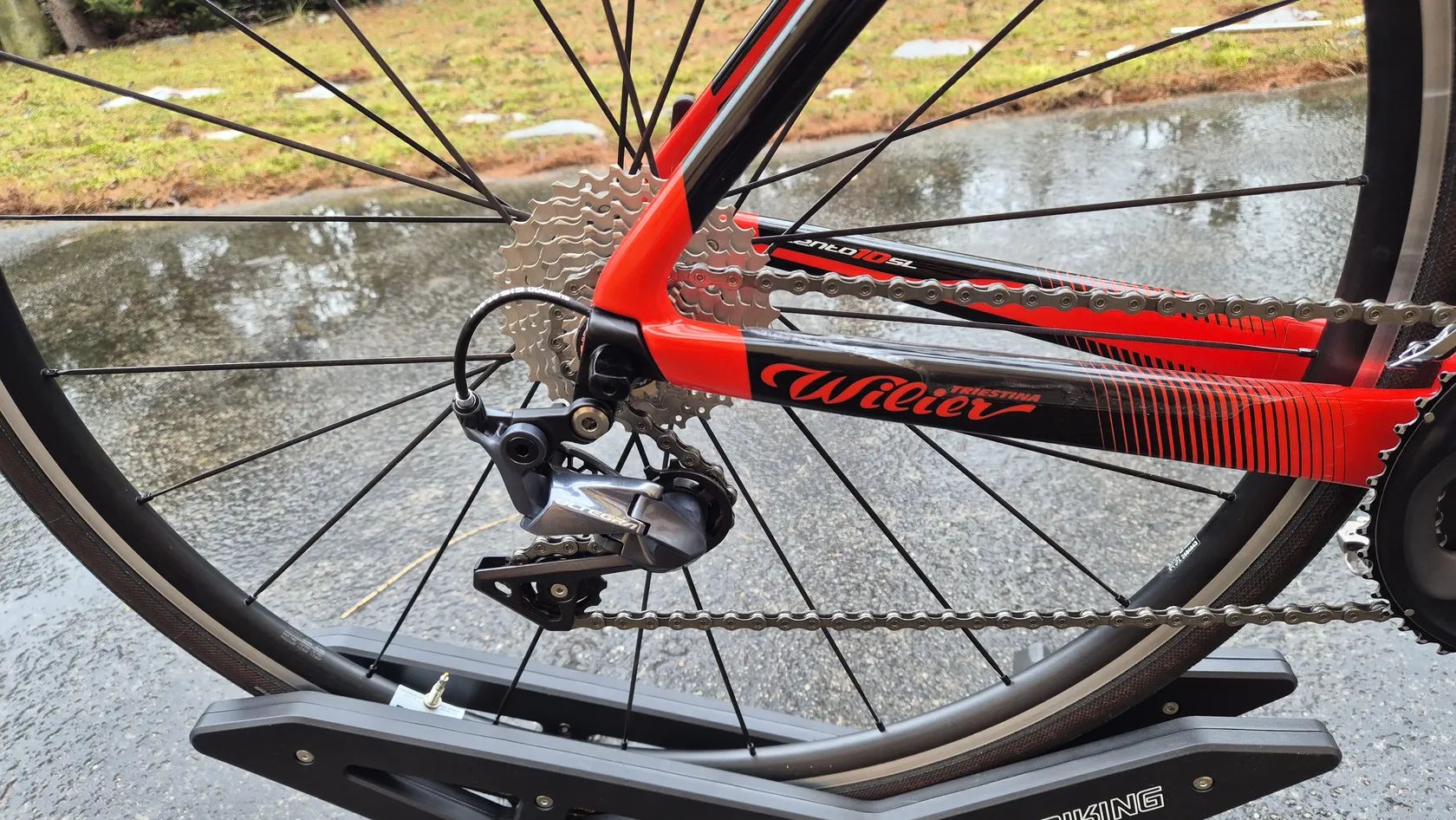 Nabízím k prodeji silniční kolo italské značky Wilier Cento10 SL, velikost L (56), zakoupeno na podzim 2023, jsem první majitel. Model Cento10 SL je aero silniční rám s velmi dobrým poměrem tuhosti, hmotnosti a komfortu. Doporučená výška jezdce: 178–188 cm, Používáno rekreačně, 1,5 sezóny, pouze za sucha. Kolo je bez pádu, bez prasklin a bez poškození rámu, nikdy havarované. Pouze minimální kosmetické známky běžného používání. Technicky ve výborném stavu. Kompletní mechanická sada Shimano Ultegra 2×11, Převodníky 50/34, Kazeta 11–30, Kola DT Swiss P1800 Spline, Pláště Continental Grand Prix 5000 700×25 Ráfkové brzdy. Možnost prohlídky a projetí v Poděbradech.