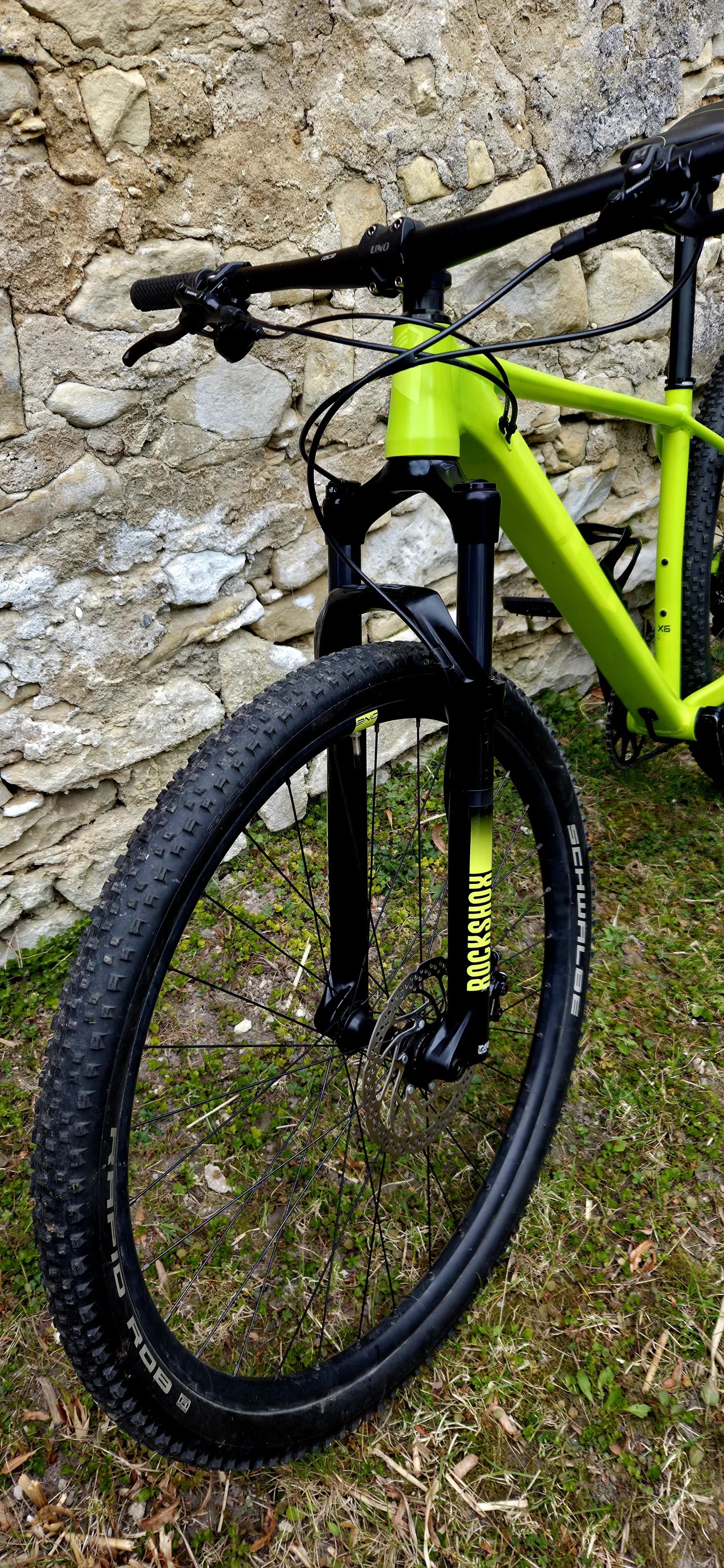 - Rám: Alu X6 Ultralite (lehký závodní hliník, vnitřní vedení kabelů) - Vidlice: RockShox Judy Silver TK, vzduchová, zdvih 100 mm - Převody: Shimano Deore 1x11 (kazeta 11–51) - Brzdy: Shimano hydraulické kotoučové - Kola: 29" - Pláště: Schwalbe Rapid Rob - Hmotnost: cca 12,6 kg - Ráfky: Stars J25DH - Náboje: Shimano (pevné osy Boost)