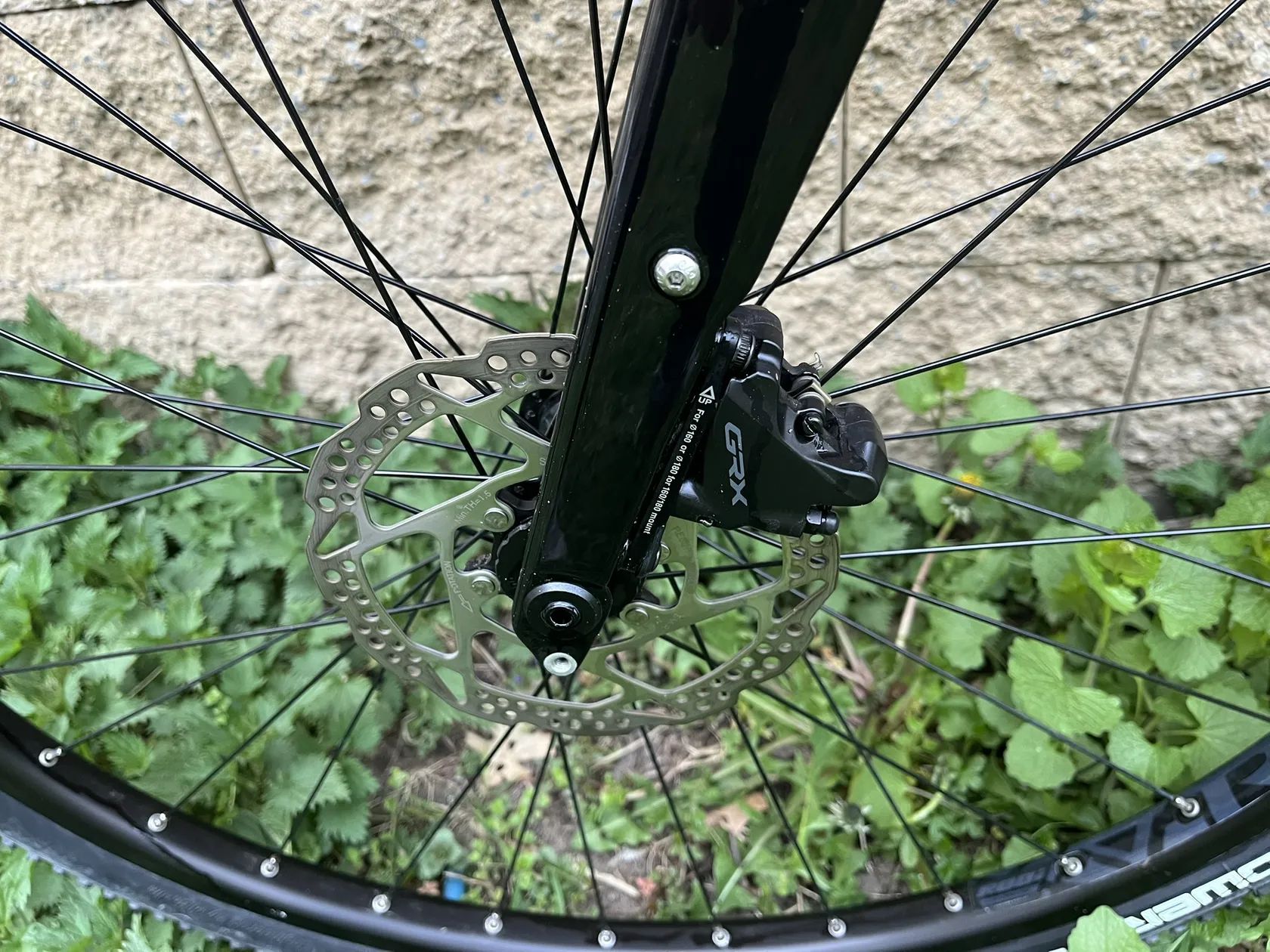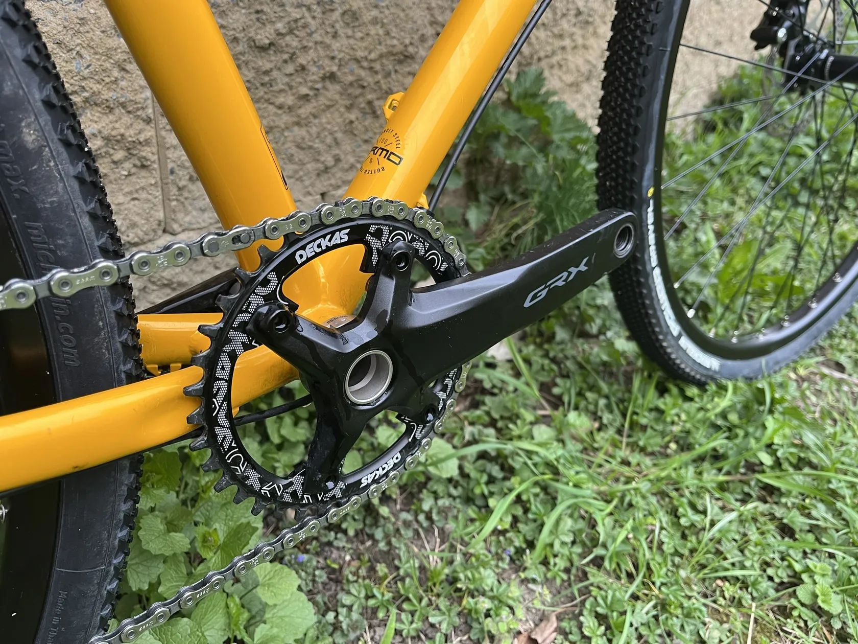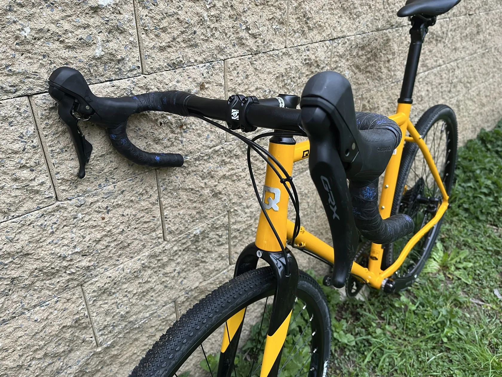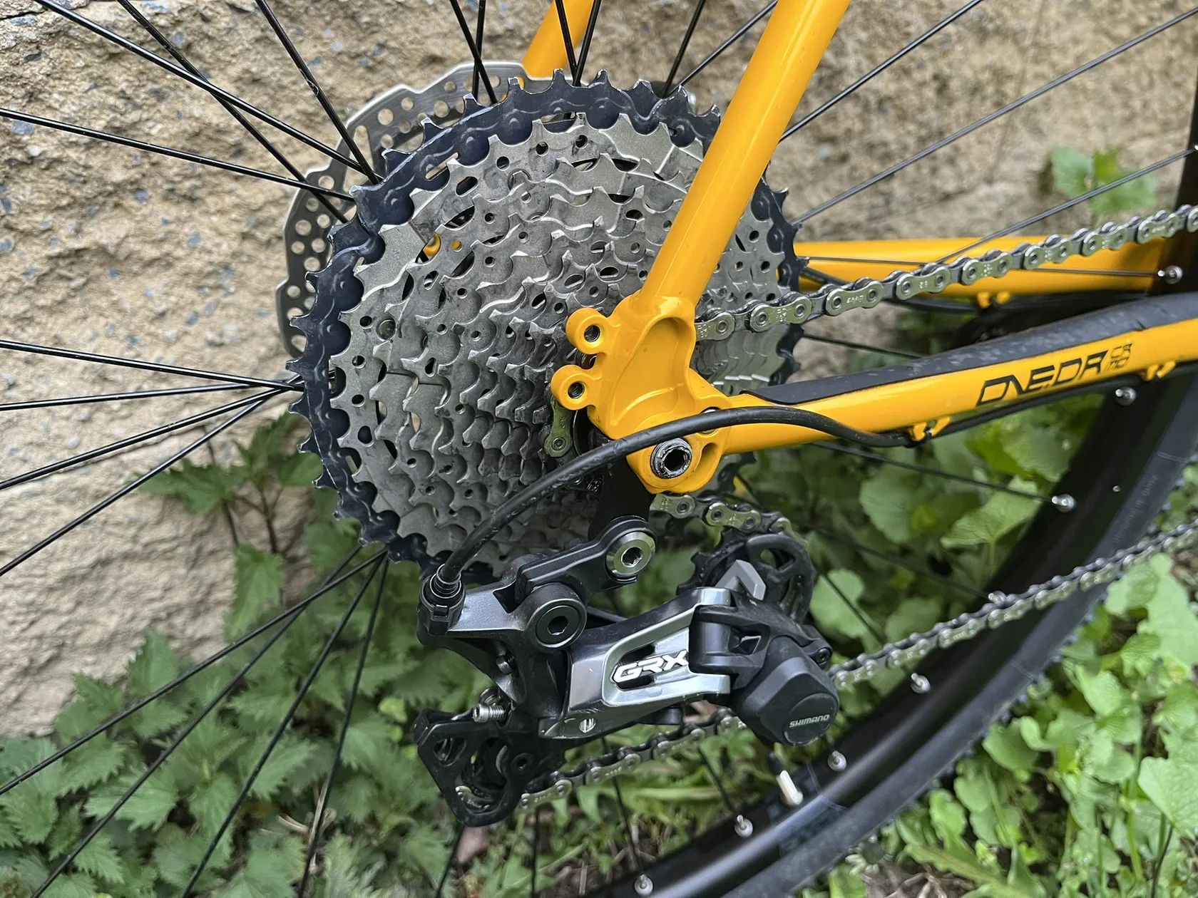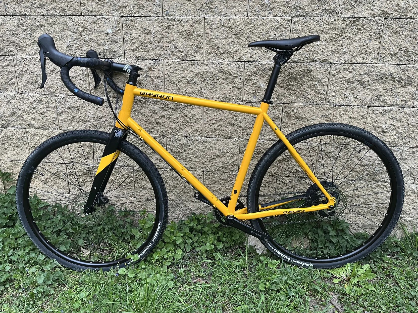 Pohon 11s GRX s hydraulickými brzdami. Oproti továrnímu osazení pevná sedlovka s elastometrem, sedlo WTB Silverado a 38z převodník.