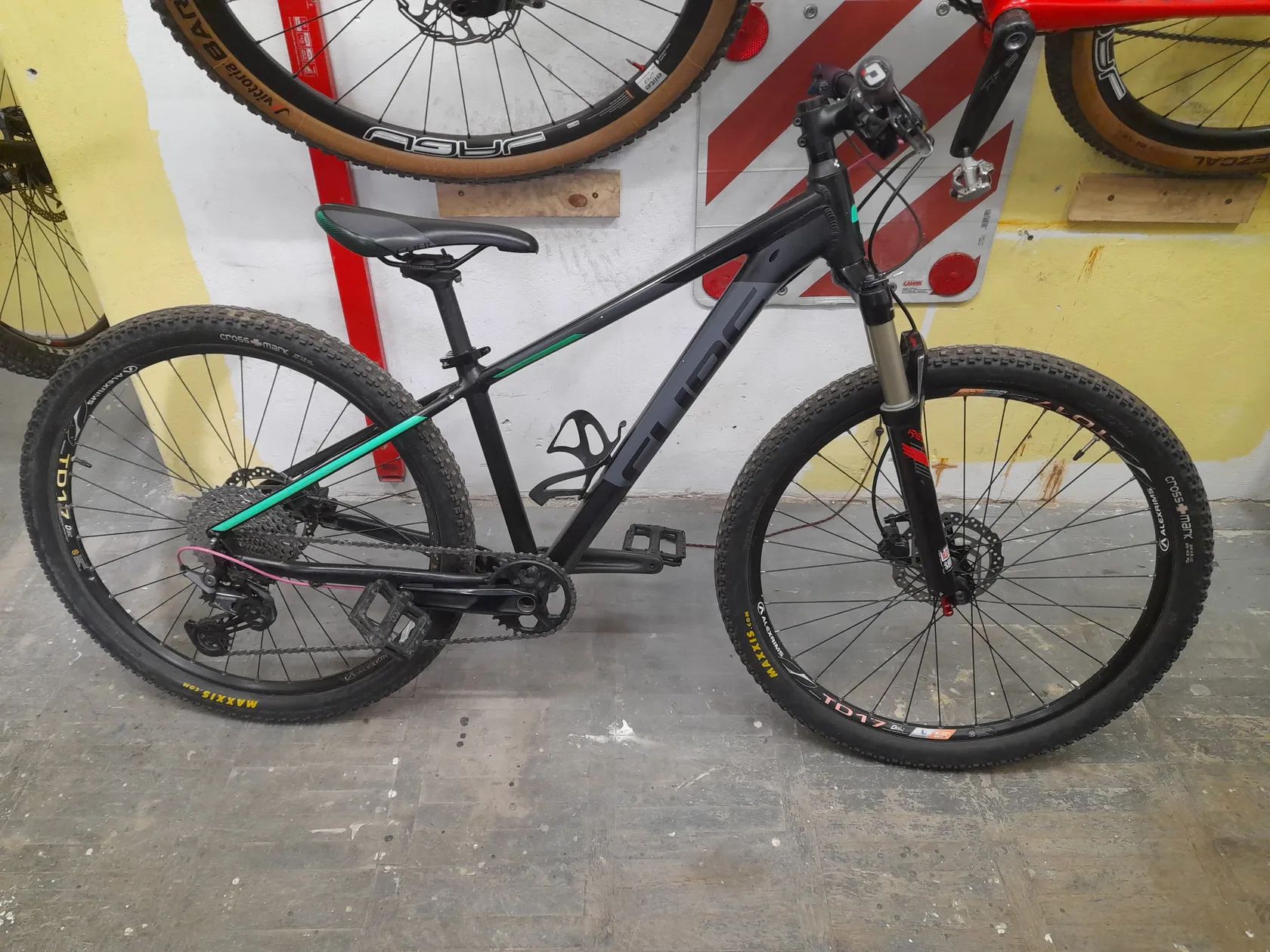 Prodám horské kolo Cube Aim Pro 1x11, velikost S, používané dívkou na dětské triatlonové závody. Vidlice Rock Shock Reba SL, brzdy Tektro, kliky, řazení, přehazovačka Shimano Deore, kazeta Shimano Deore XT 11-42, pláště Maxxis CrossMark 26x2.1. Rám sedne i malé závodnici a pojme kola 27.5, my jsme nakonec pořídili karbon. V případě zájmu je možné vyměnit kazetu za Shimano Deore 11-50 pro malého vrchaře. Kolo je servisované, drobné oděrky od převozů a závodního úsilí.