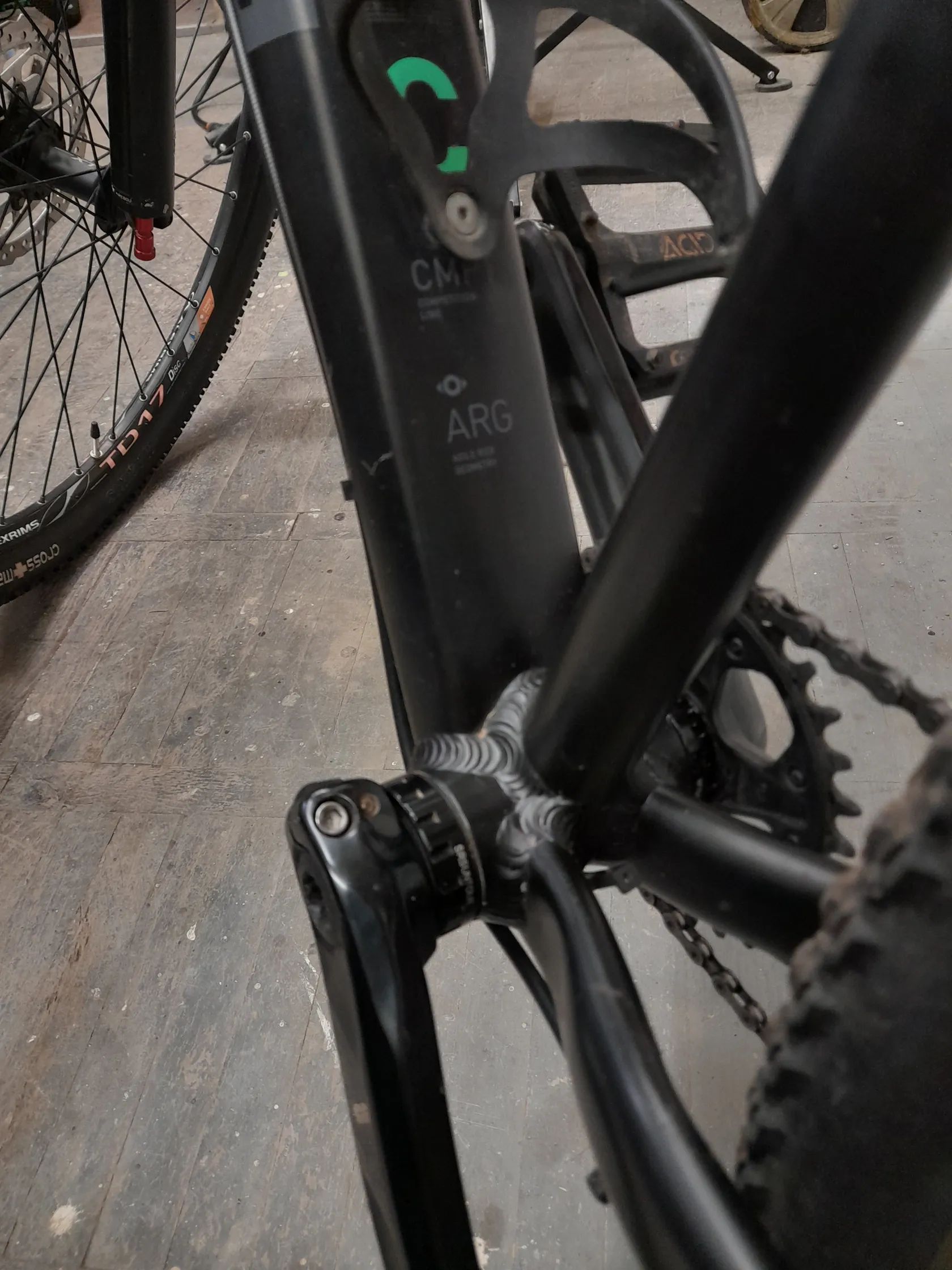 Kolo je aktuálně osazeno na 26" kolech, rám ale dle popisu umožní i použití 27,5" kol