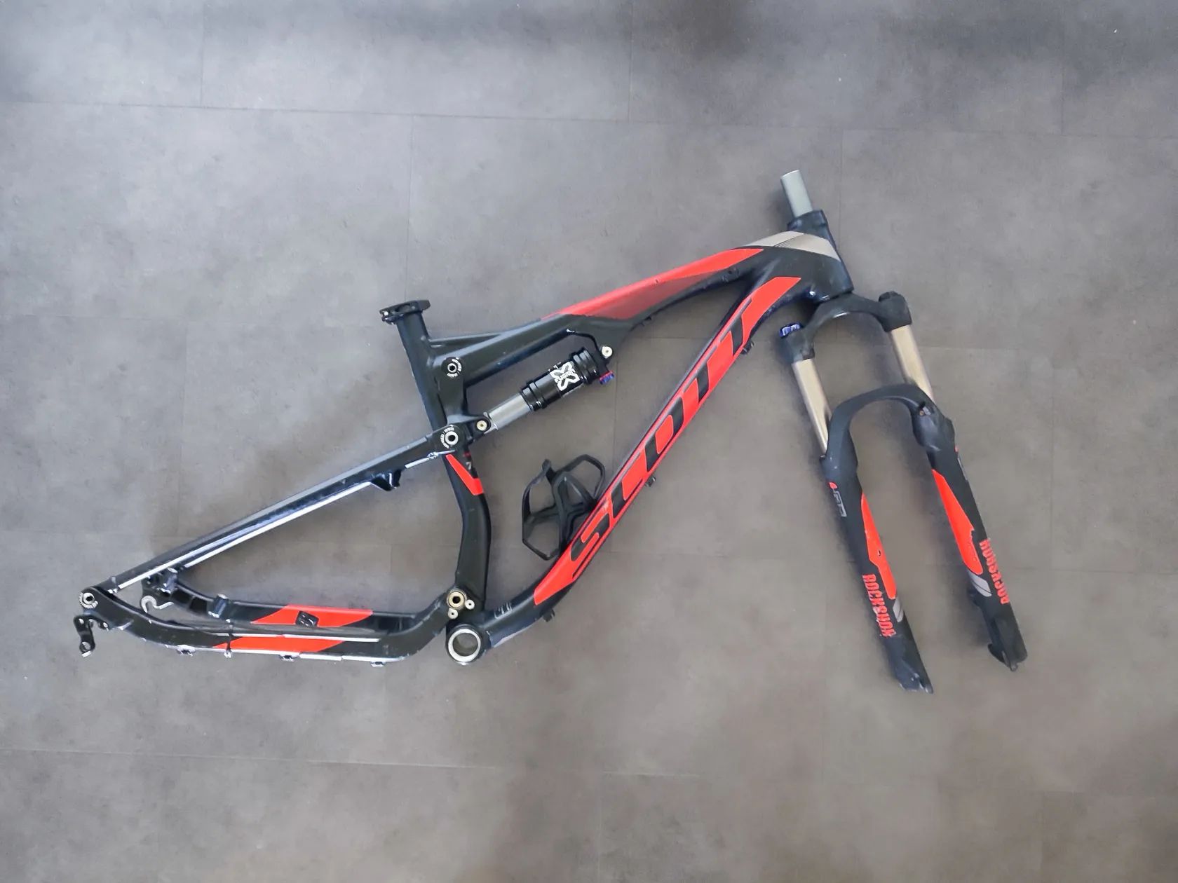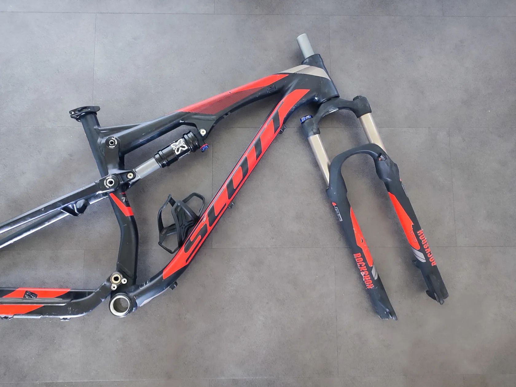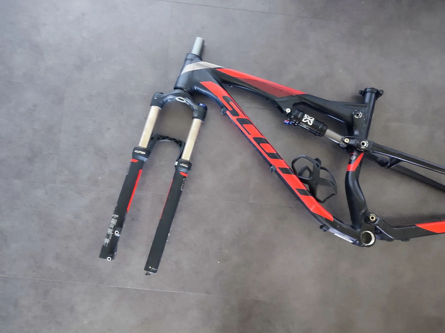 rocnik 2014 velkost M pre 27,5" kolesa zdvih 120mm tlmic X-Fusion O2 RL, lockout a nastavenie odskoku vidlica RockShox XC 30 TK, 120mm, Qr oska pre sedlovku 31,6mm zadna oska je na rychloupinak, sirka 135mm predava sa ako set, ram, hlavove zlozenie,sedlova objimka, tlmic, vidlica a kosik na flasu pred odoslanim komplet vycitene a premazane vsetky tlmiace jednotky su plne funkcne ram nema volu a loziska idu hladko samozrejme skrabance sa najdu, ale bez preliacin alebo prasklin
