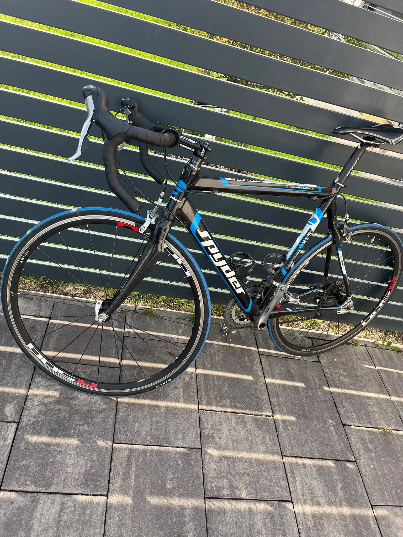 Prodám silniční kolo Spyder na rafkovych brzdách,rám je hliník ,zadní stavba rámu a vidlice Karbon. Osazení Shimano Tiagra 2x10,přehazovačka Ultegra,délka klik 175mm,šířka řídítek 44mm. Velikost rámu 58.