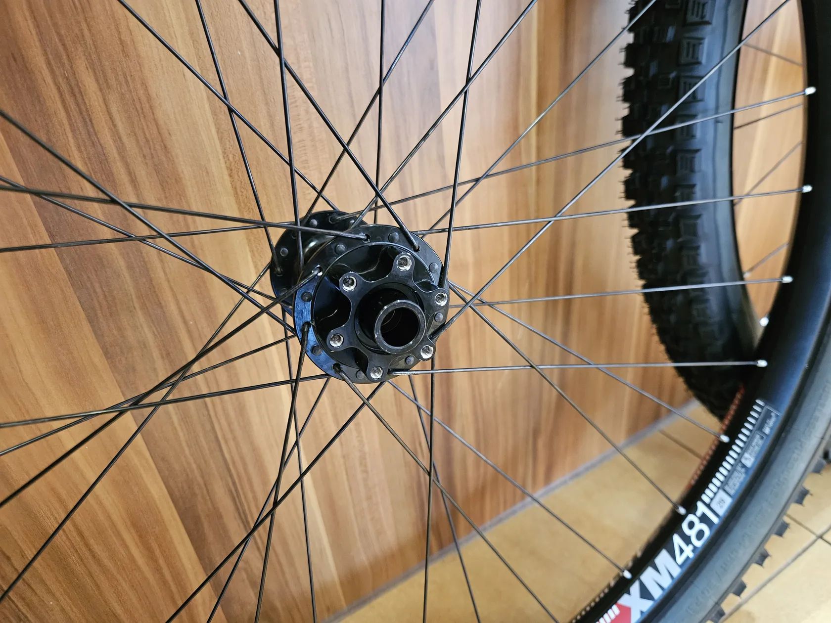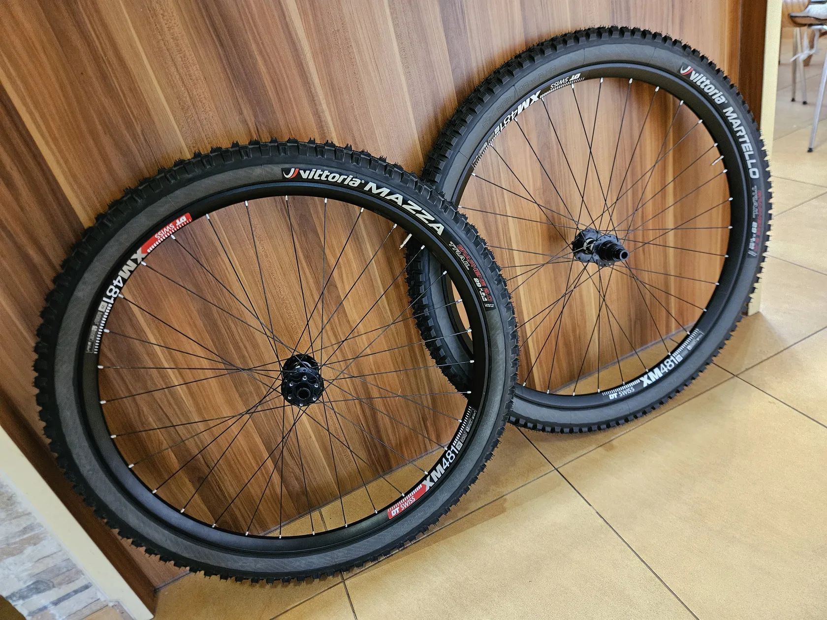 Prodám sadu 29" zápletů s ráfky DT XM481 (30mm, 32 děr) a nábami DT Swiss 350 classic s novým XD ořechem a 18z rohatkou. Dráty jsou klasické J-bend (1.7mm) a příruba na kotouč je na 6 děr. Osy jsou klasika boost 110x15 a 148x12. Rovnou s nainstalovanou bezdušovou pásku (nahazoval jsem plášť s dušemi, aby si páska sedla). Kola byla asi sezónu ježděna, než jsem kopnul Stan's Flow ráfek na zadku. Dopředu putoval nový XM481 a dozadu bazarový, ale úplně rovný (viz grafy). Zadní má pár zamaskovaných škrábanců a loga pootočená o 90 stupňů (na pravé a levé straně). Kola byla vypletena s pomocí tenzometru a na předku i zadku bylo vybalancováno napětí drátů - viz grafy.