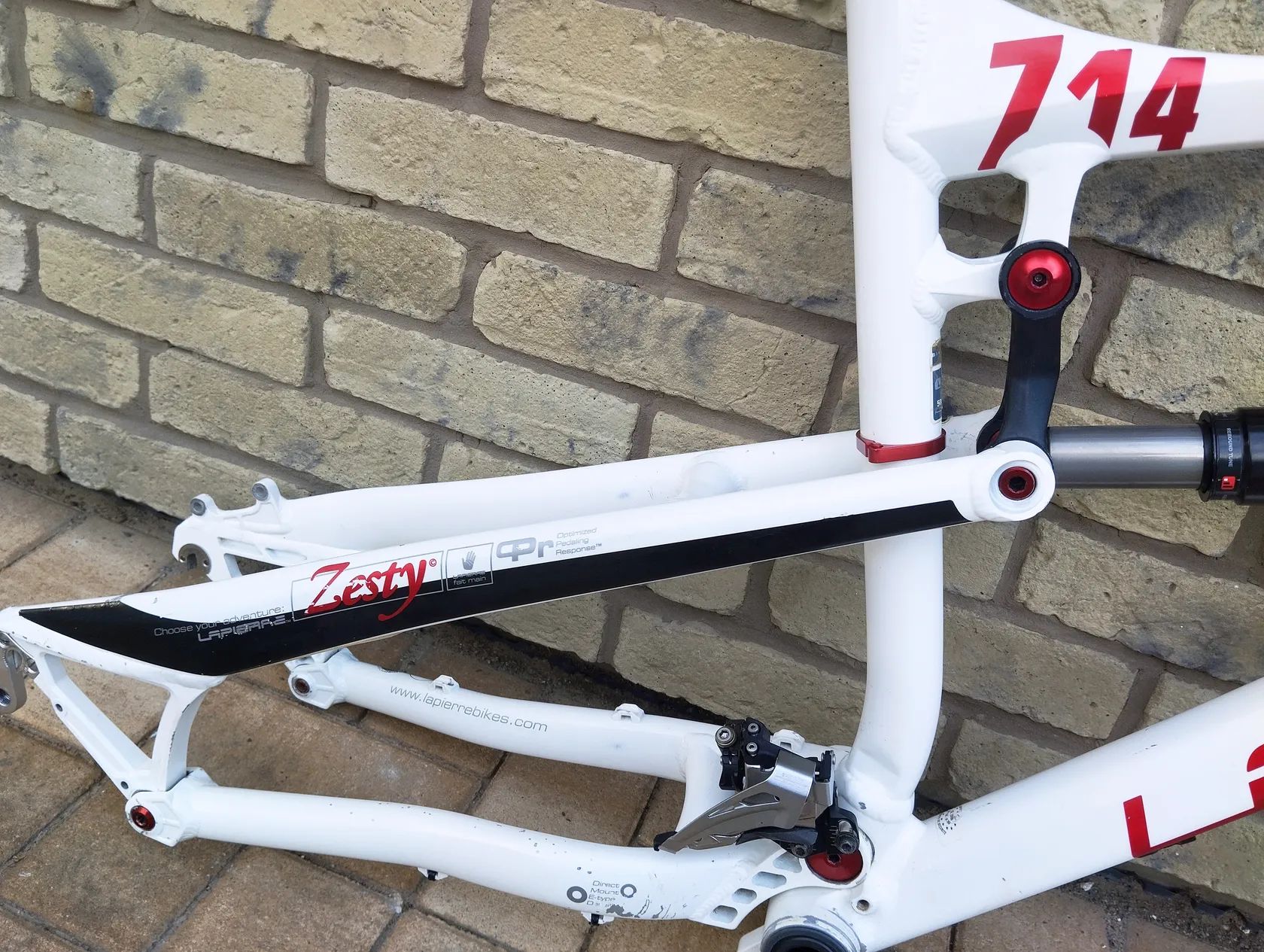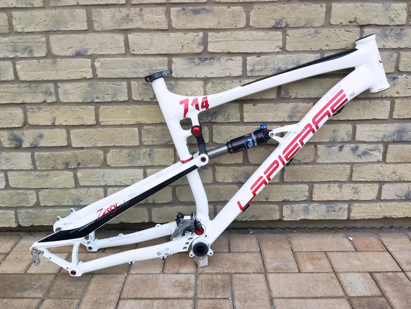 Rám Lapierre Zesty 714 spolu s tlumičem FOX RP 23 se zdvihem 140 mm ve velikosti L ( 176 - 190 cm). K rámu přidám kompletní hlavko na průmyslech, objímku sedlovky, středové složení, patku přehazovačky a přesmykač Shimano Deore. Pro kotoučové brzdy, možnost uchycení napíináku standart ISCG, na klasický upinák kola, klasický průmer středu klik, hlavko 1 1/8", tlumič se třema úrovněmi komprese + zamykáni. Výbornej AM, trailový rám , bez jediné závady, nevařen , bez prulačenín, tlumič po servisní prohlídce. Hodonín nebo zašlu i poštou.