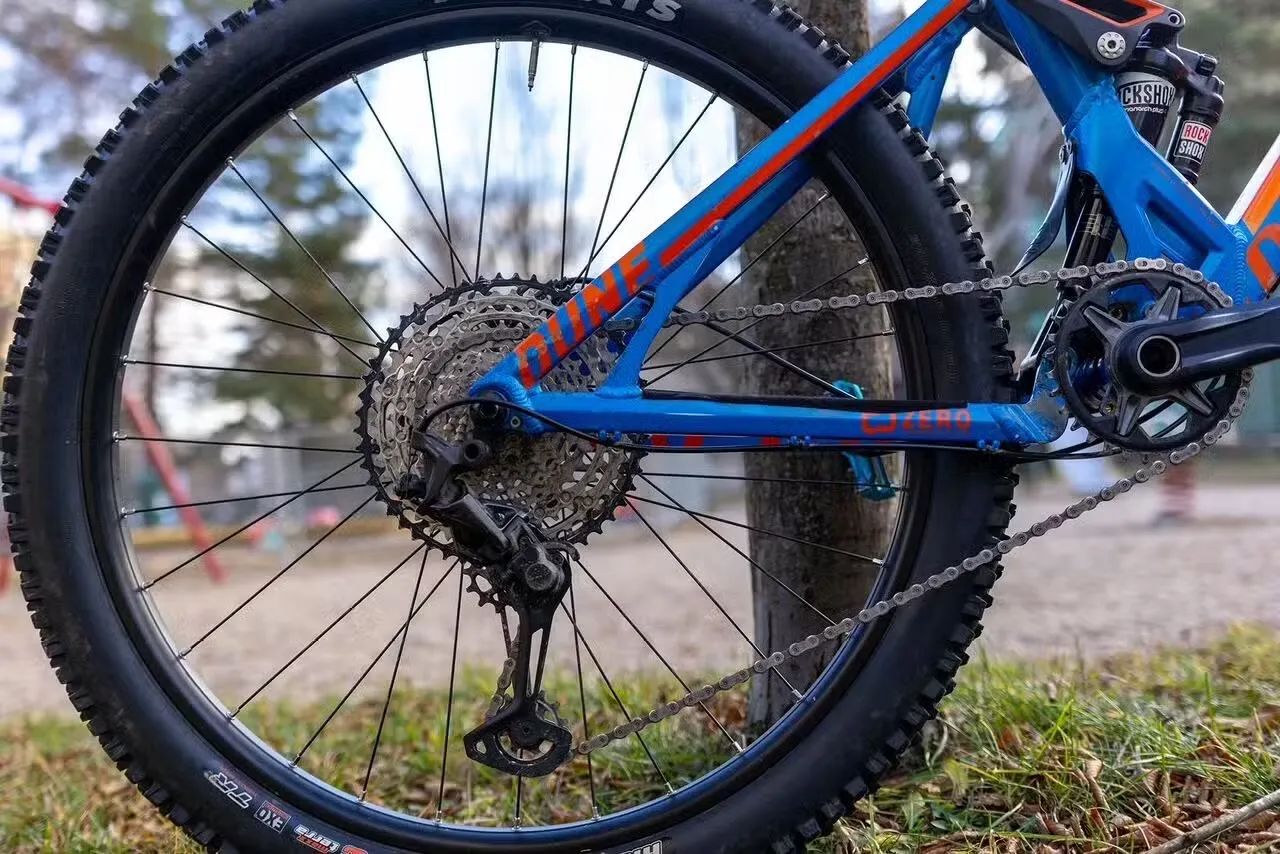 Pláště: přední MAXXIS ASSEGAI 29x2.40 a zadní MAXXIS HIGH ROLLER II kevlar 27.5x2.50