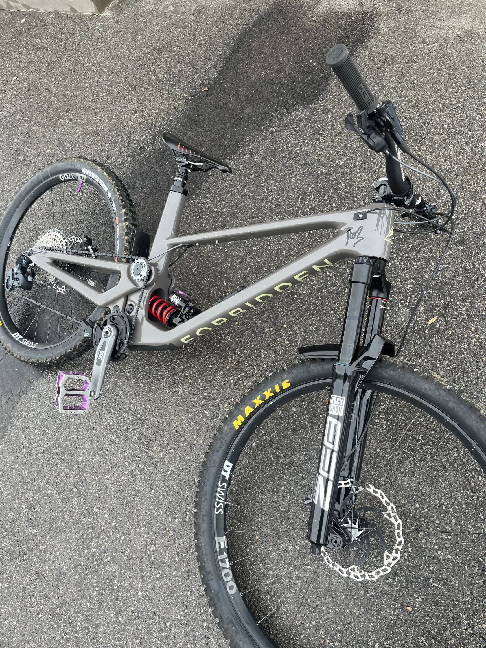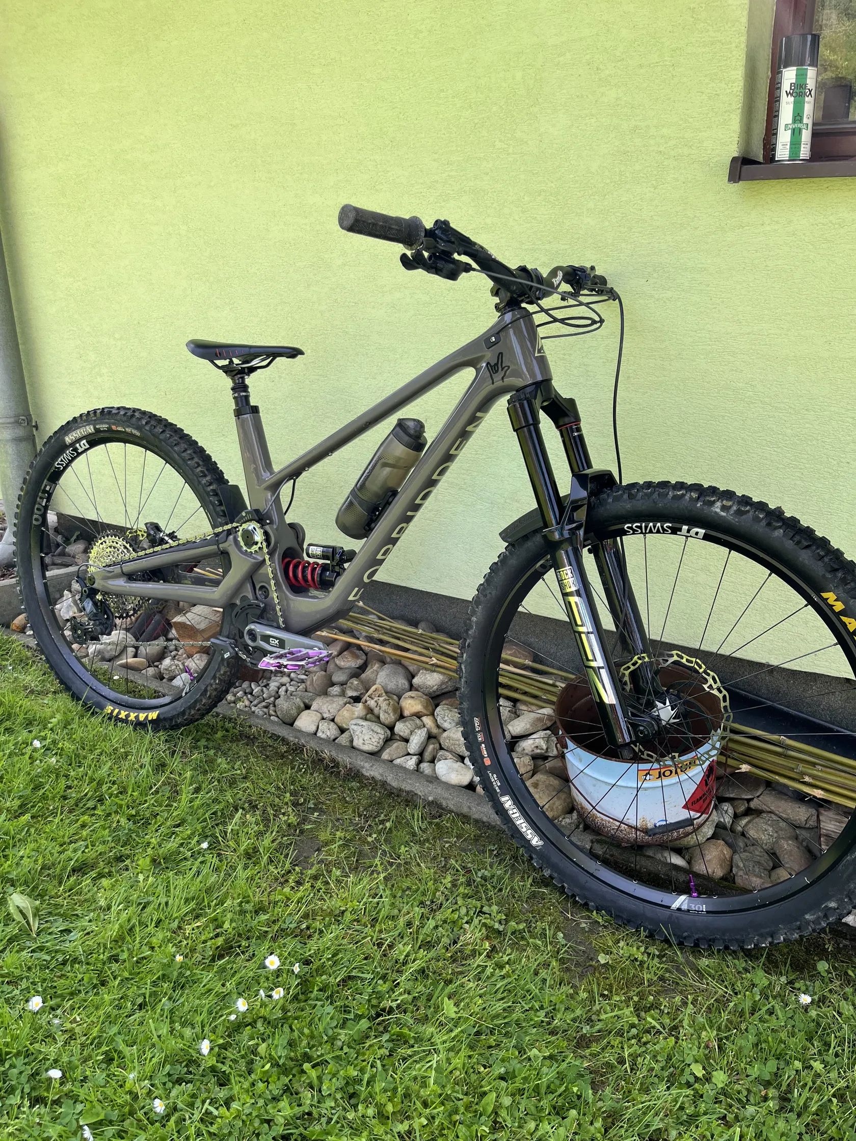 Ahoj, predám tento bicykel Forbidden Druid V1 vo veľkosti L. Bicykel je aktuálne v mullet setupe 29/27,5 ale v prípade záujmu prihodím váhadlo na full 29. Bajk je v super stave v podstate je takmer celý pohon nový, vymenené všetky ložiská v ráme, zoservisované tlmenie. Cenu si predstavujem na 3300€. V prípade záujmu pošlem viac aktuálnych foto a ďalšie info. Komponenty: Vidlica: Rockshox ZEB Ultimate Charger 3.0 (nové SKF guferá) Tlmič: Rockshox SuperDeluxe Ultimate Coil Brzdy: Shimano SLX/XT Riadidlá: Renthal Predstavec: RaceFace Kotúče: Galfer 203/203 Kolesá: DT Swiss E1700 vpredu EX1700 vzadu Kľuky: Sram GX Prehadzovačka: Sram GX Teleskopka: Ascend 150mm