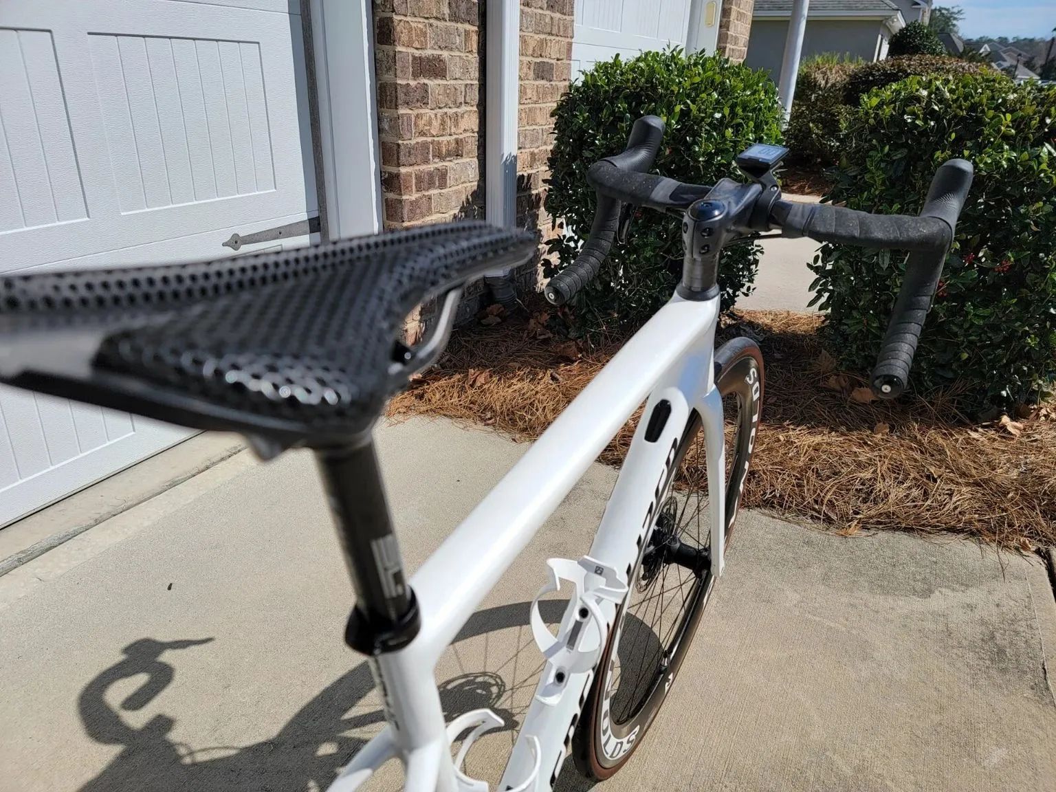Many upgrades in December 2024 Carbon Zipp SL 70 Aero Handlebar 38cm in matte black Carbon Zipp SL Sprint Stem - 90mm +/-12 1in matte black 700x28c Tires: Continental Grand Prix 5000, 700x28c Carbon FSA SL-K SB0 Seat post L400mm x Ø27.2, 31.6mm 0mm setback Carbon 3D printed Fi'zi:K Antares Versus Evo 00 Adaptive Saddle 139mm SRAM Force AXS (12 speed - Wireless Shifting) 167.5mm SRAM Force AXS 48/35 Crank Set with Quarg Power Meter