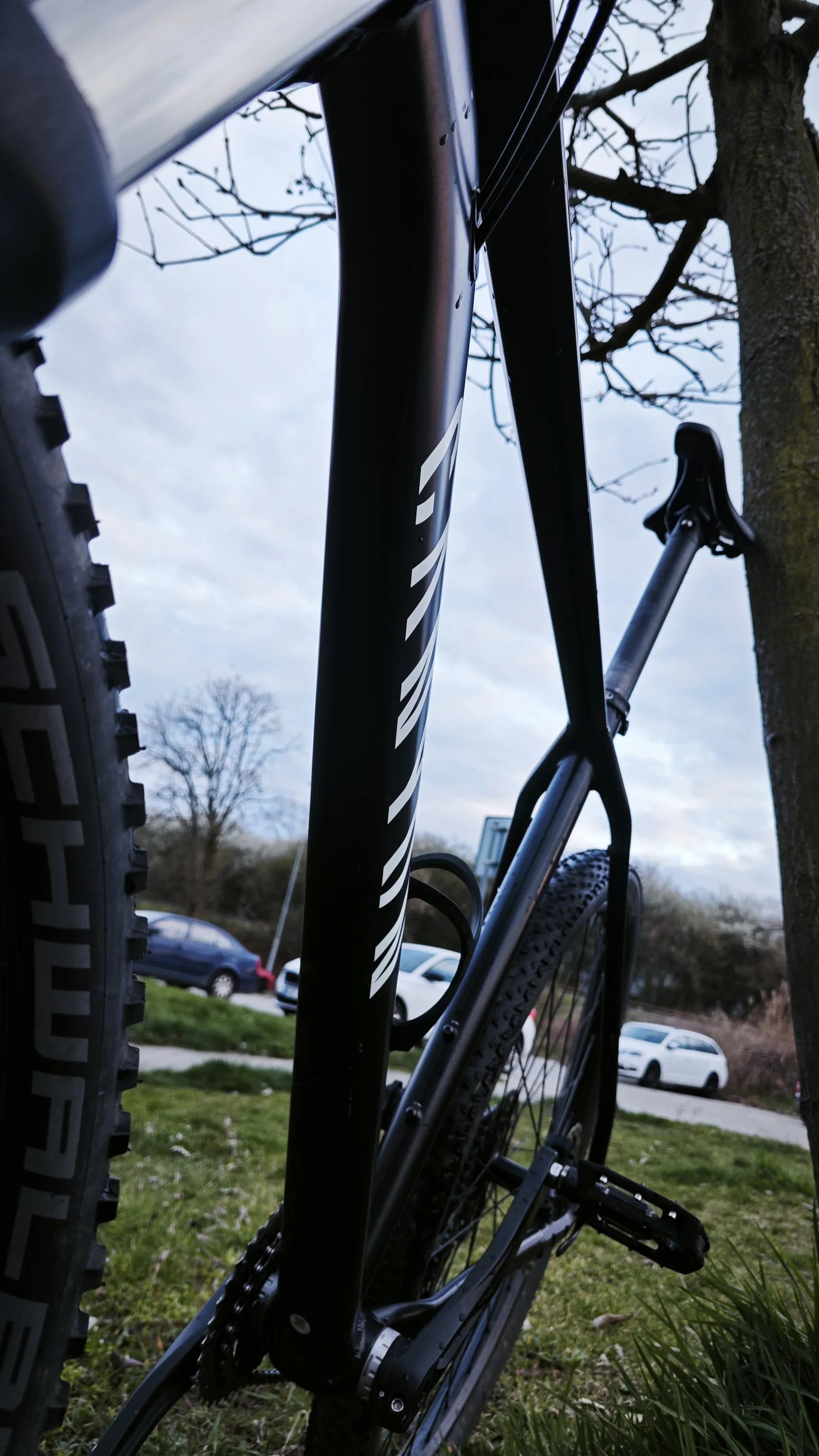 • Nové pláště (2025) – Schwalbe vpředu, Continental vzadu, orientace na grip a dobrý odval