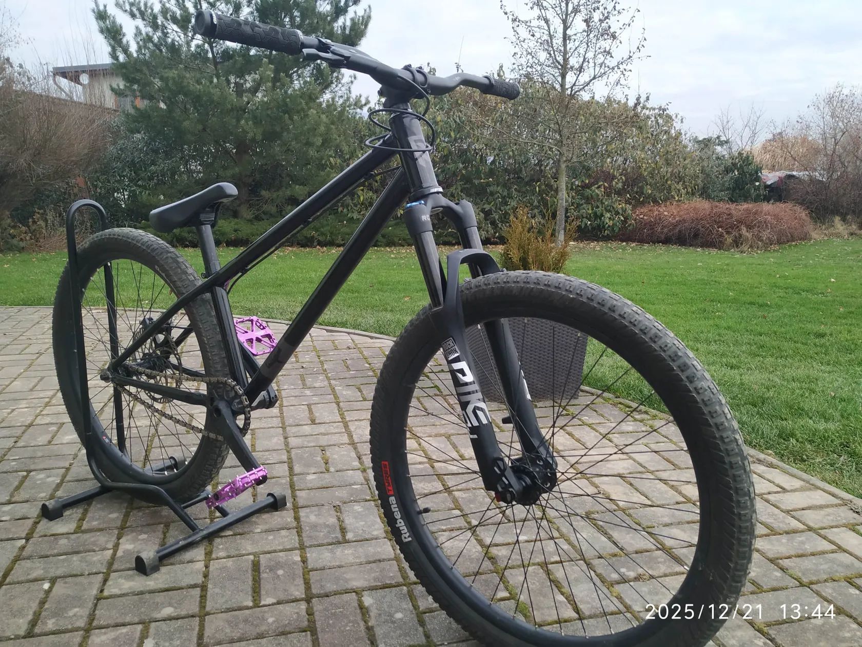 Prodám krásného dirtového Riffa. Koupeno jako nové letos v květnu. Superpevný ocelový rám. Na kole je vyměněna přední vidlice a upravena zadní brzda (Sram DB8 + kotouč 203mm). Původní díly (přední vidle i obě kompletní brzdy) jsou v ceně.