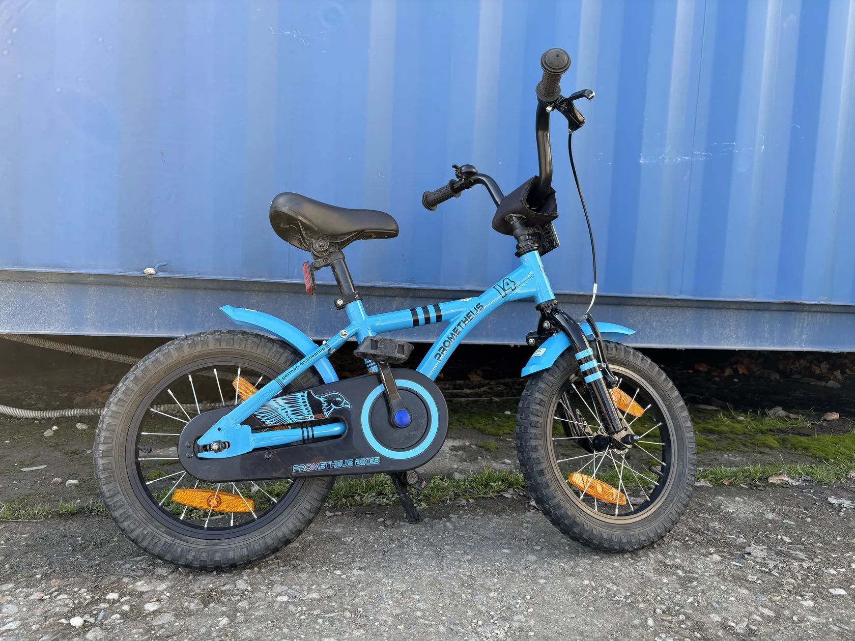 Prodám zachovalé dětské kolo velikosti 14 palců PROMETHEUS BICYCLES® HAWK. Včetně stojánku a přídavných koleček. Pouze osobní předání Praha (Radotín, Barrandov), Kladno.