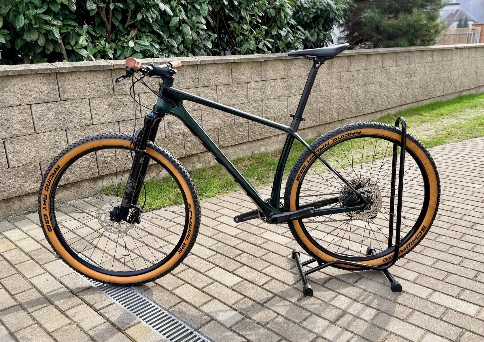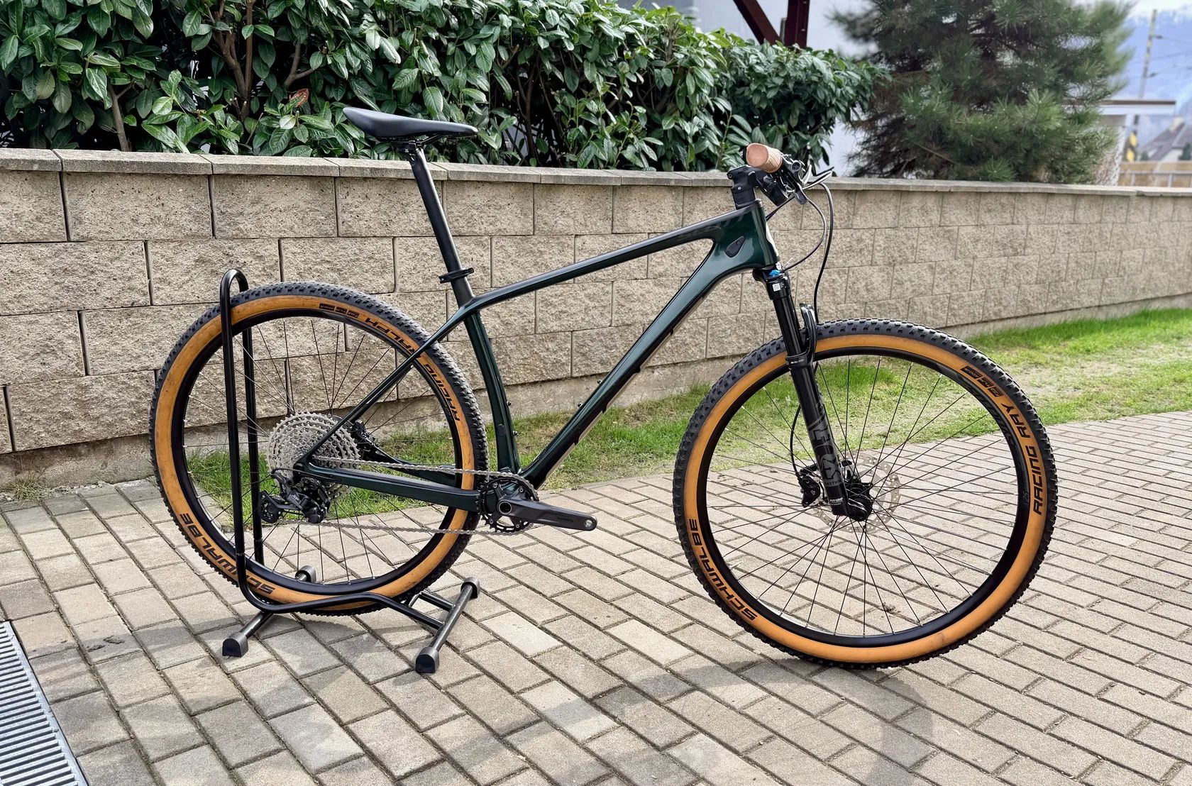 Pláště Schwalbe Racing Ray / Racing Ralph – osvědčená XC závodní kombinace (lepší vedení vpředu, rychlost vzadu).