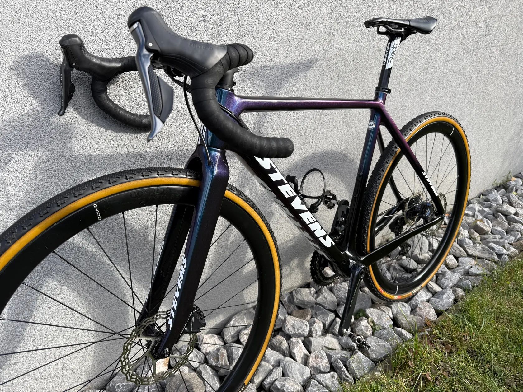 Prodám cyklokros - gravel karbonové kolo STEVENS SUPER PRESTIGE, velikost 52 kolo nastaveno na výšku postavy 172cm řazení a třmeny: SH ULTEGRA kliky: SH ULTEGRA 175, 46-36 přehazovačka, přesmykač: SH GRX kazeta: SH ULTEGRA 11-34 sedlovka: karbon DEDA SUPERZERO představec: RITCHEY WCS řidítka: karbon BASSO 42 kola: karbonová PANCHOWHEELS CRAZE 38mm, náboje DT SWISS 350, dráty: SAPIM CX RAY prodávám bez pedálů cena bez kol 45 000 Kč