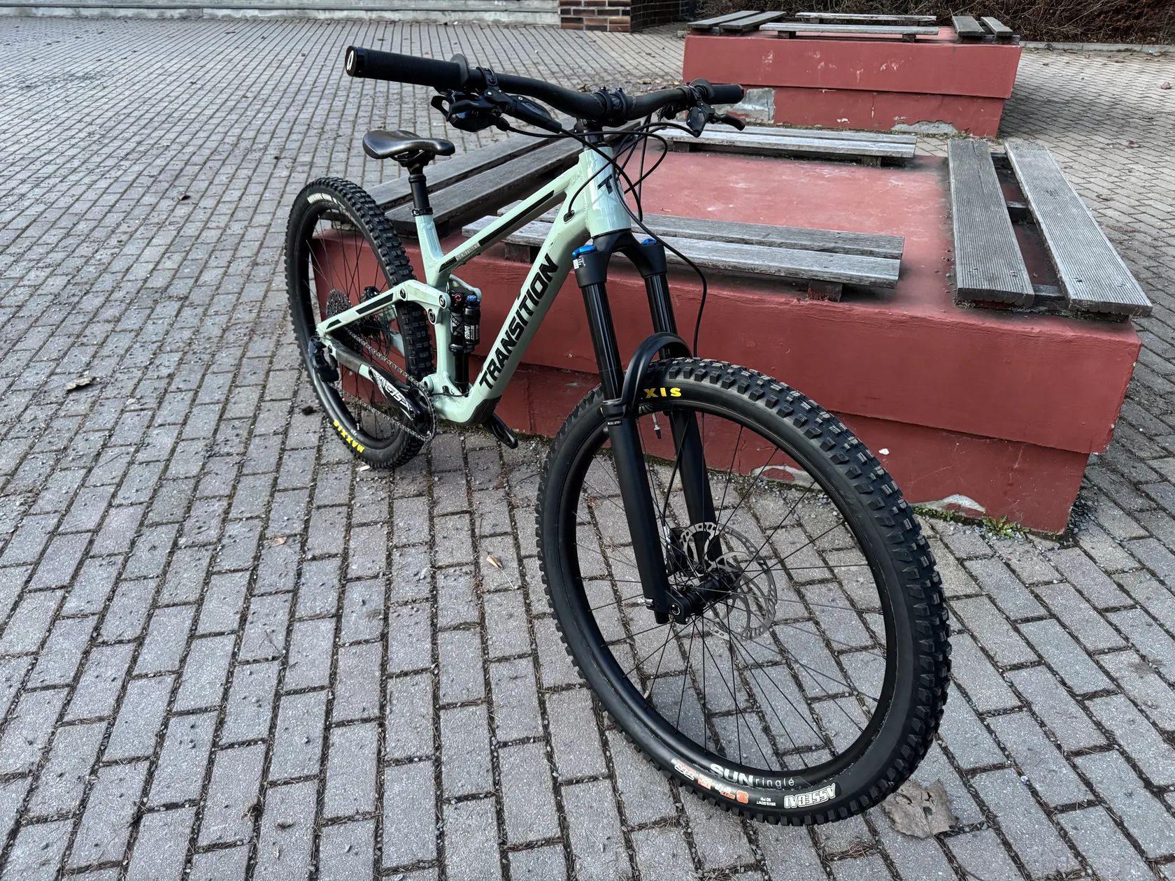 - rám: jazdený Transition Sentinel V2 Alloy L + hlavové zloženie FSA + oska + UDH pätka + sedlová objímka burgtec - vidlica: nová Fox Float 36 Performance 160mm - tlmič: jazdený Fox Float X Performance Elite 205x62.5 - kolesá: nové SUNRINGLE Wheelset SR329 TRAIL Expert 29" Disc + orechy MS a xD - pneu: zánovné Maxxis Assegai 2.5 EXO+ a Maxxis DHR II 2.4 DD - sedlovka: nová Limotec 150mm s páčkou - predstavec: nová Race-Face Aeffect R 35 (priemer 35mm, dĺžka 40mm) - riaditká: nové Race-Face Aeffect R 35 (priemer 35mm, šírka 780mm, zdvih 20mm, nezrezané) - sedlo: jazdené Bel Air 3 - gripy: nové Niner - sada: jazdená Sram GX Lunar + nové kľuky Truvativ Descendant 170mm s novým prevodníkom a novou reťazou - kotúče: jazdené Magura 203+180 6-hole - brzdy: nové Sram G2 RSC P+Z - zadnú hadičku som ešte nestihol skrátiť, nemám u seba Sram olivku+tŕň, urobím dodatočne