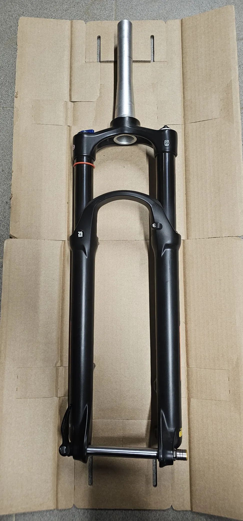 Prodám používanou vidlici Suntour XCR34 Air se zdvihem 130mm, pro boost osu (15x110 mm). Poškrábaný sloupek (od předchozího majitele, v místě, kde je uvnitř rámu) - nemá vliv na funkci, viz. fotky. Délka sloupku cca. 193 mm