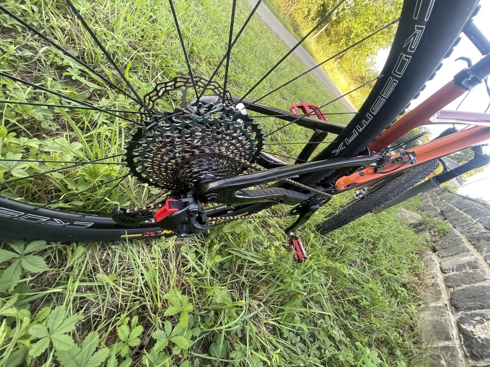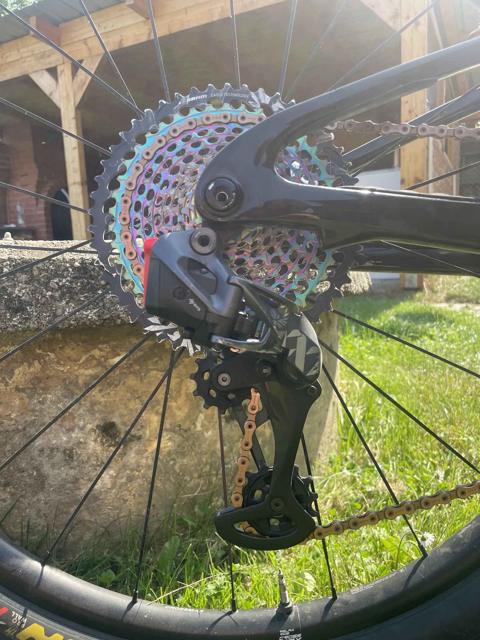 Pohon: SRAM GX Eagle AXS (bezdrátové elektronické řazení), kazeta GSM GX Eagle (nejvyšší specifikace)