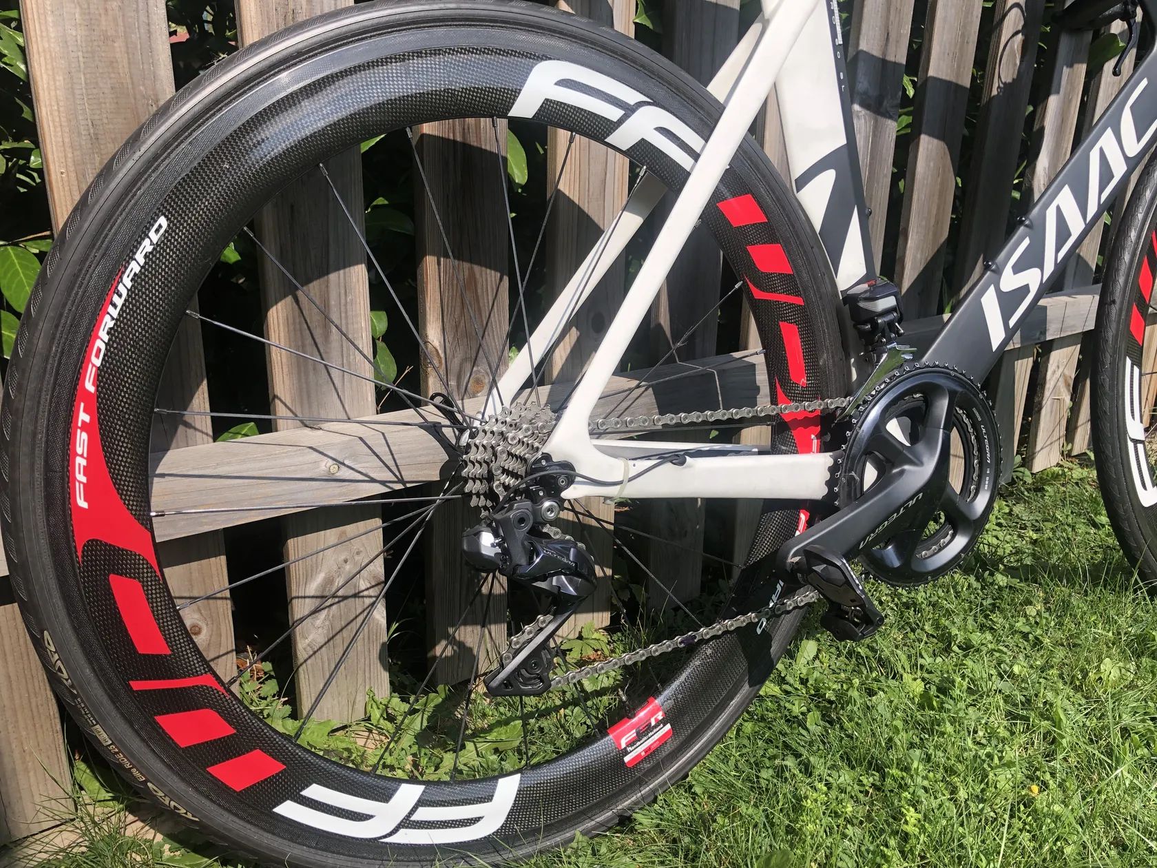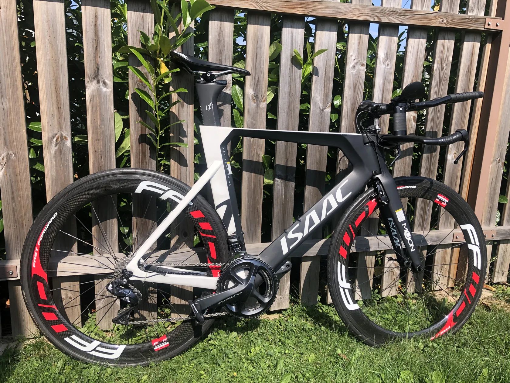 Nabízím TT/Tri speciál kolo ISAAC MUON ULTEGRA Di2 velikost 56, ideálně na postavu 175 - 188 cm Kolo je osazeno koly FFWD F6R galuskové provedení, kazeta 11/25,převodník 53/39 , 11sp, ULTEGRA Di2 spolehlivé a přesné řazení na pákách i nástavcích .Výborná volba pro triatlon, rychlá a pohodlná jízda Kolo je ve výborném stavu .Ke kolu přidávám karbonové zadní kolo SPINOLLO, náboj DT SWISS 240, vč.kazety ULTEGRA 11sp, galuska TUFO , jako volbu pro rychlou jízdu na lehčím profilu.