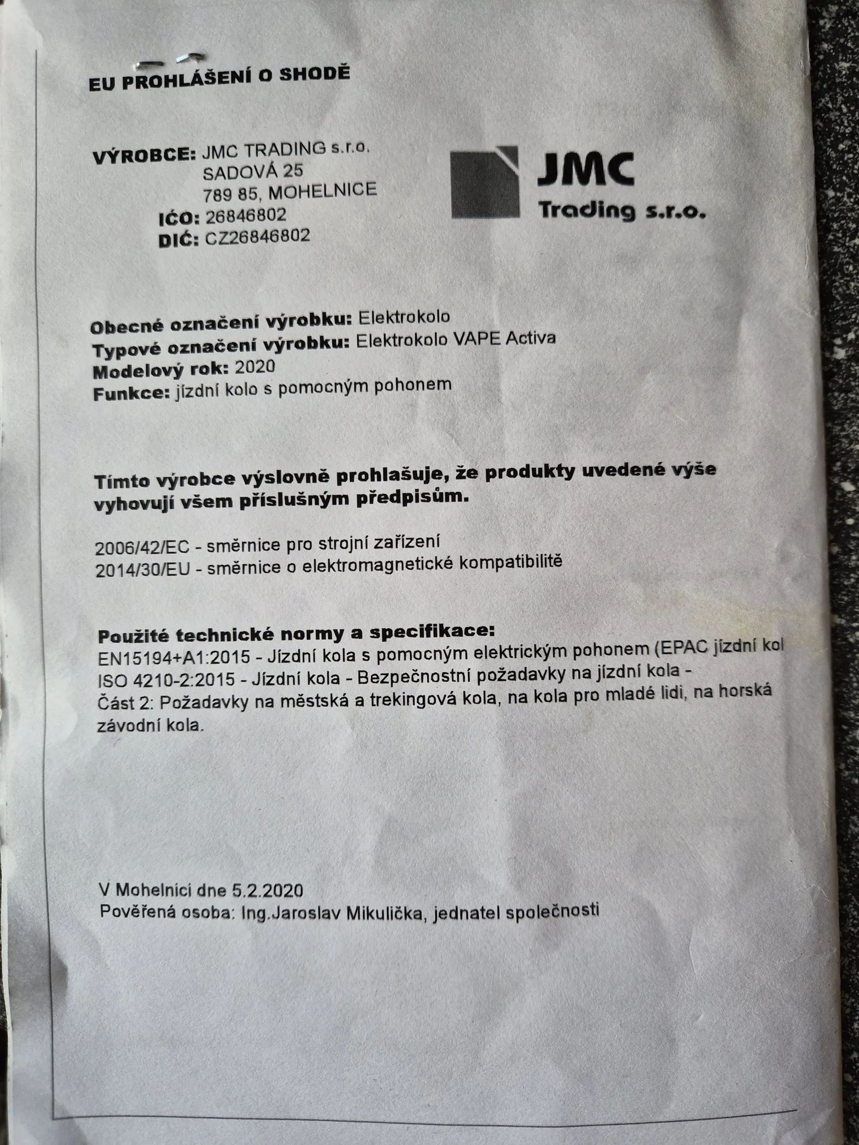 Dobrý den, mám zájem o Vámi nabízený inzerát Elektrokolo VAPE activa