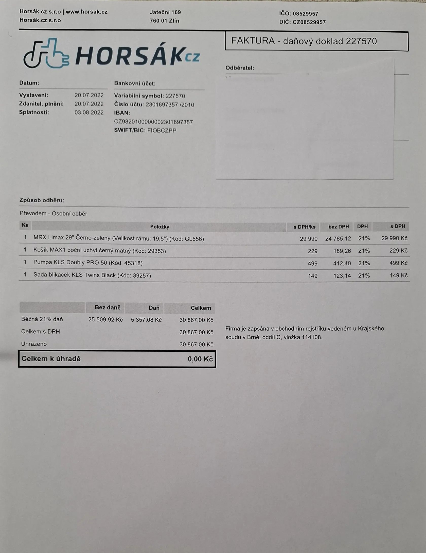 Bezpečný nákup • Doporučujeme osobní předávání a nákup zde inzerovaného zboží! Cyklobazar.cz varuje před podvodníky ze zahraničí, kteří se snaží vylákat zálohu za přepravu zboží. Viz. obchodní podmínky Nahlásit inzerát