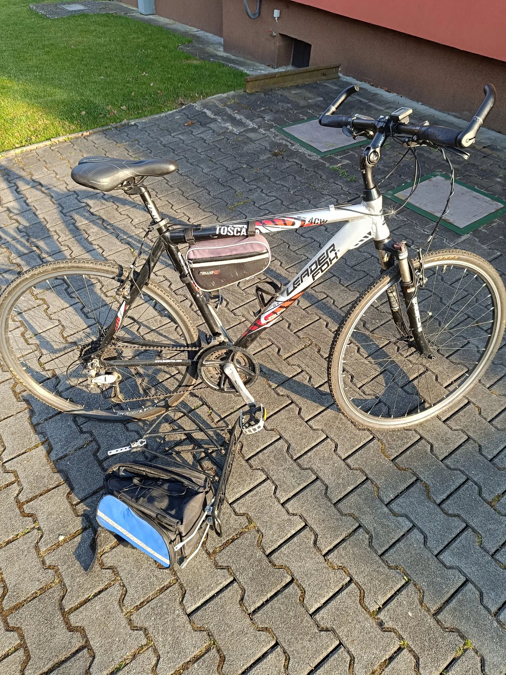Prodám spolehlivé kolo Leader Fox toscana. Po kompletním servisu. Nový řetěz, brzdy,pneu. Kolo je seřízené. V ceně je cyklokomputer,stojan,rohy,malá brašna na nářadí, nosič včetně rozkládací brašny.