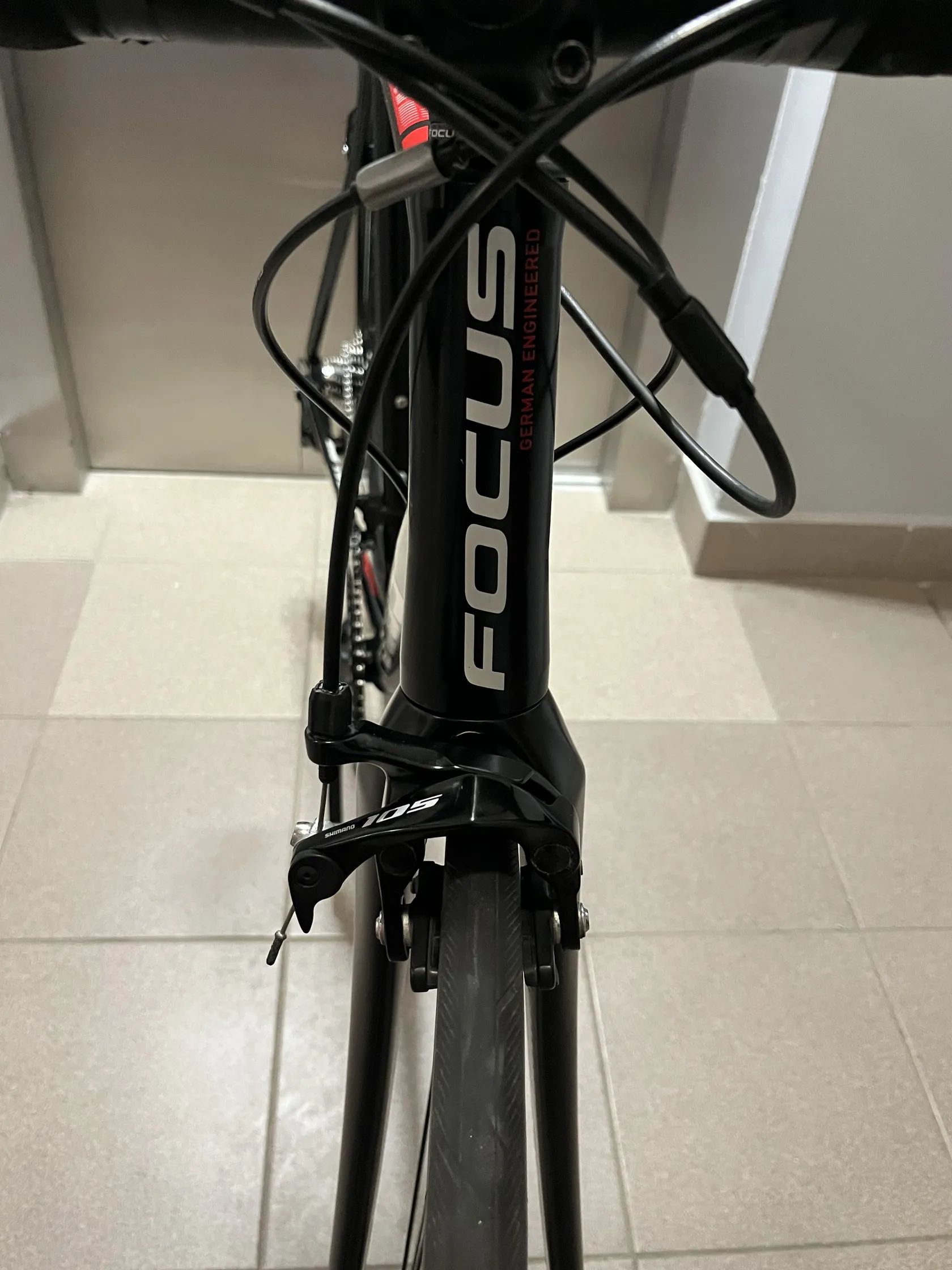 Prodám lehké perfektně osazené silniční kolo focus cayo 2.0 AL komplet osazené shimano 105 2x11 s upgradovanými brzdovými čelistmi na shimano 105 7000, s karbonovou vidlicí. Lanka vedená rámem, rám má UCI certifikaci (viz. foto). Kolo je technicky v perfektním stavu, seřízené a čisté, bez investic. Na kole je udělaný nový střed, kazeta, řetěz a zánovní pláště Continental. Vizuálně má pár oděrek a na horní rámové trubce je výrazná oděrka která vznikla nešetrným uchycením v držáku na auto, každopádně se jedná pouze o estetickou vadu, rám je strukturálně naprosto vpořádku, komponenty neobouchané v perfektním stavu. Je to velikost L, ideál tedy pro postavu 175-190cm, já mám 188 a sedělo mi dobře.