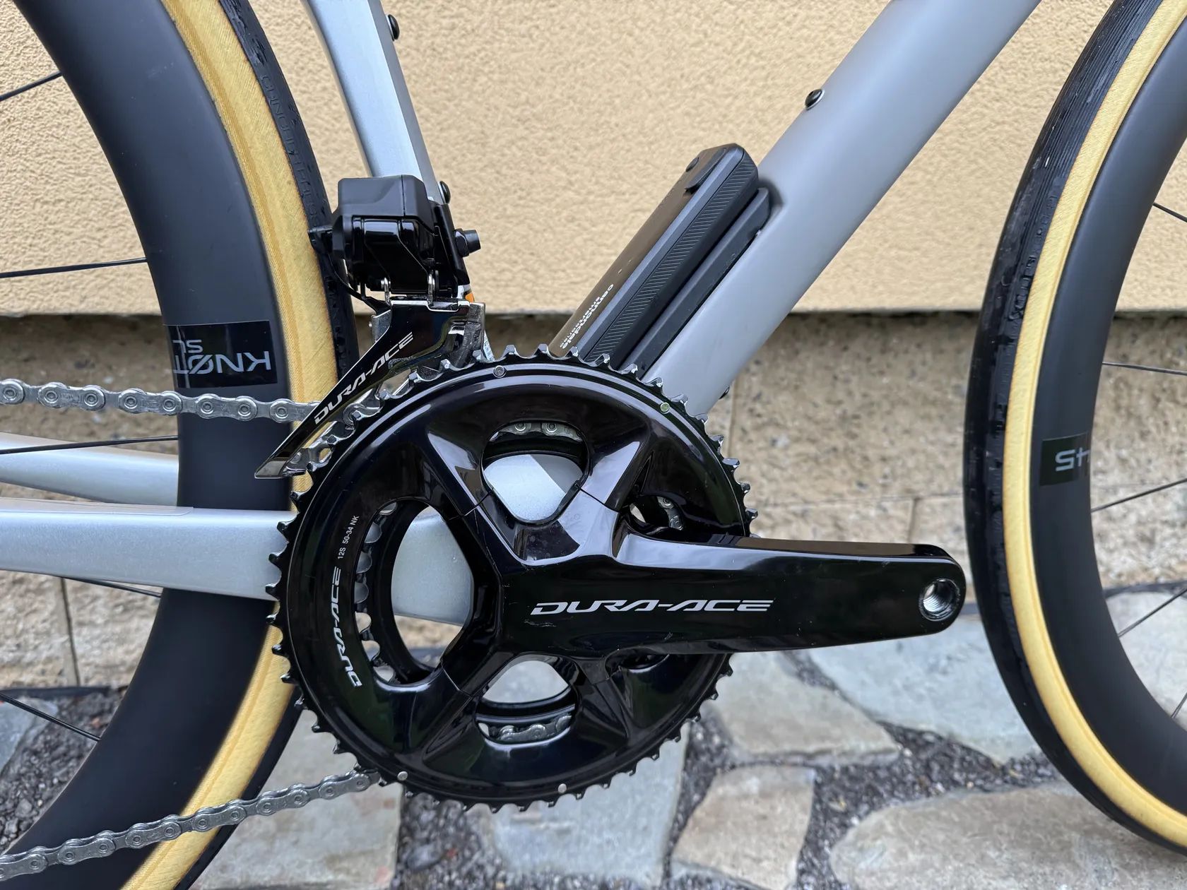 Rámový set: Symapse Carbon Zapletená kola: HollowGram 45 SL Knot, náboje DT 240S Přehazovačka: Shimano Dura-Ace Di2 Přesmykač: Shimano Dura-Ace Di2 Řazení / brzdy: Shimano Dura-Ace Di2, kotouče RT900 Kliky: Shimano Dura-Ace 50/34 Kazeta: Shimano Dura-Ace Řídítka: HollowGram SAVE SystemBar, Carbon Sedlovka: HollowGram SAVE Carbon SmartSense, 27.2 x 350mm Sedlo: Fizik Tempo Argo R3, 150mm width, K:ium rails Pláště: Vittoria Corsa tan wall, 700 x 30c