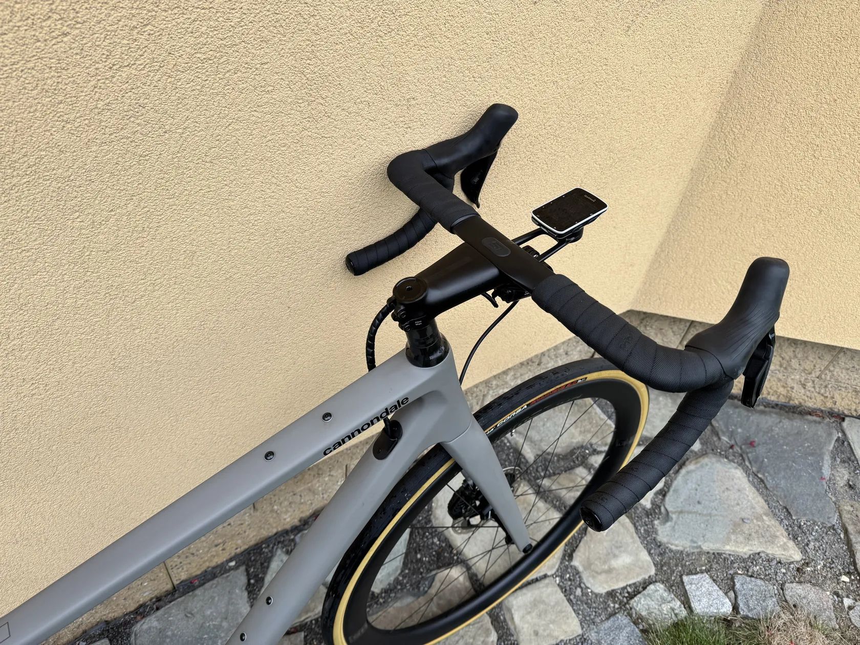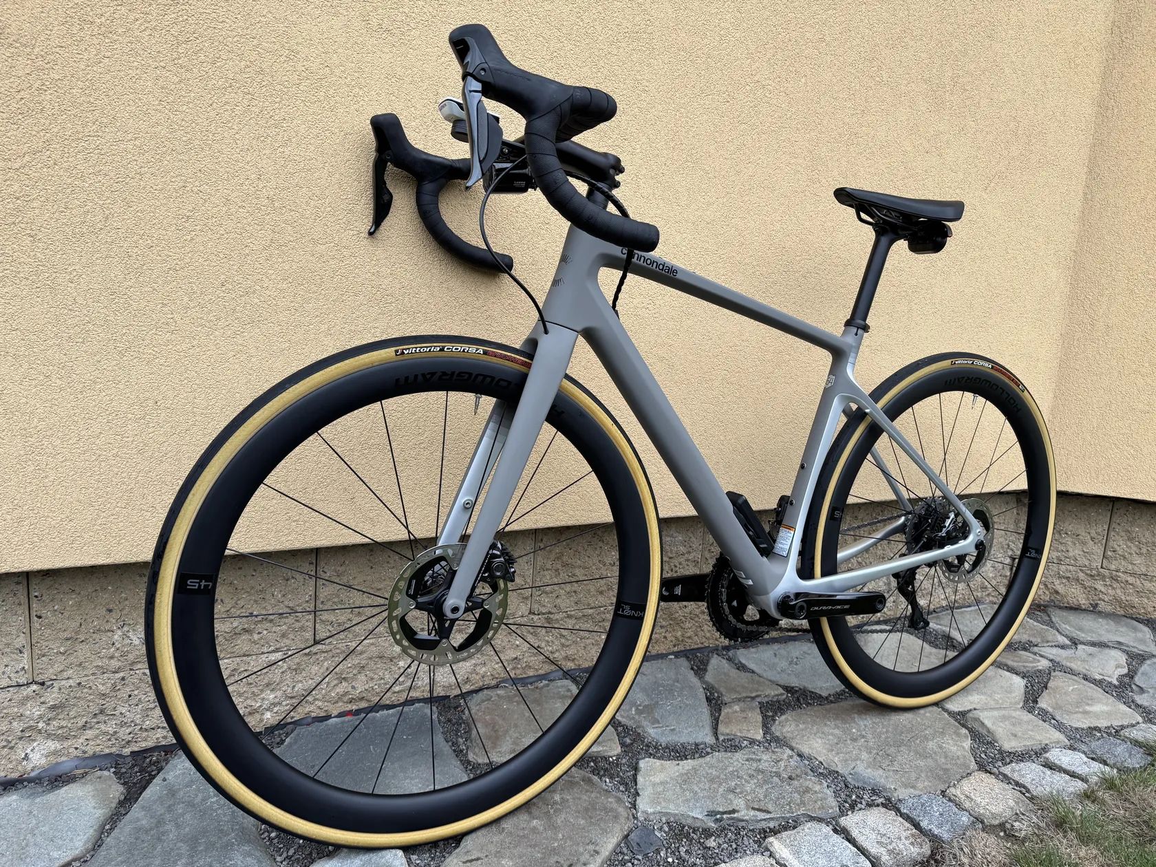Karbonový rám Synapse Carbon + karbonová řídítka a sedlovka – lehké a komfortní sportovní osazení.