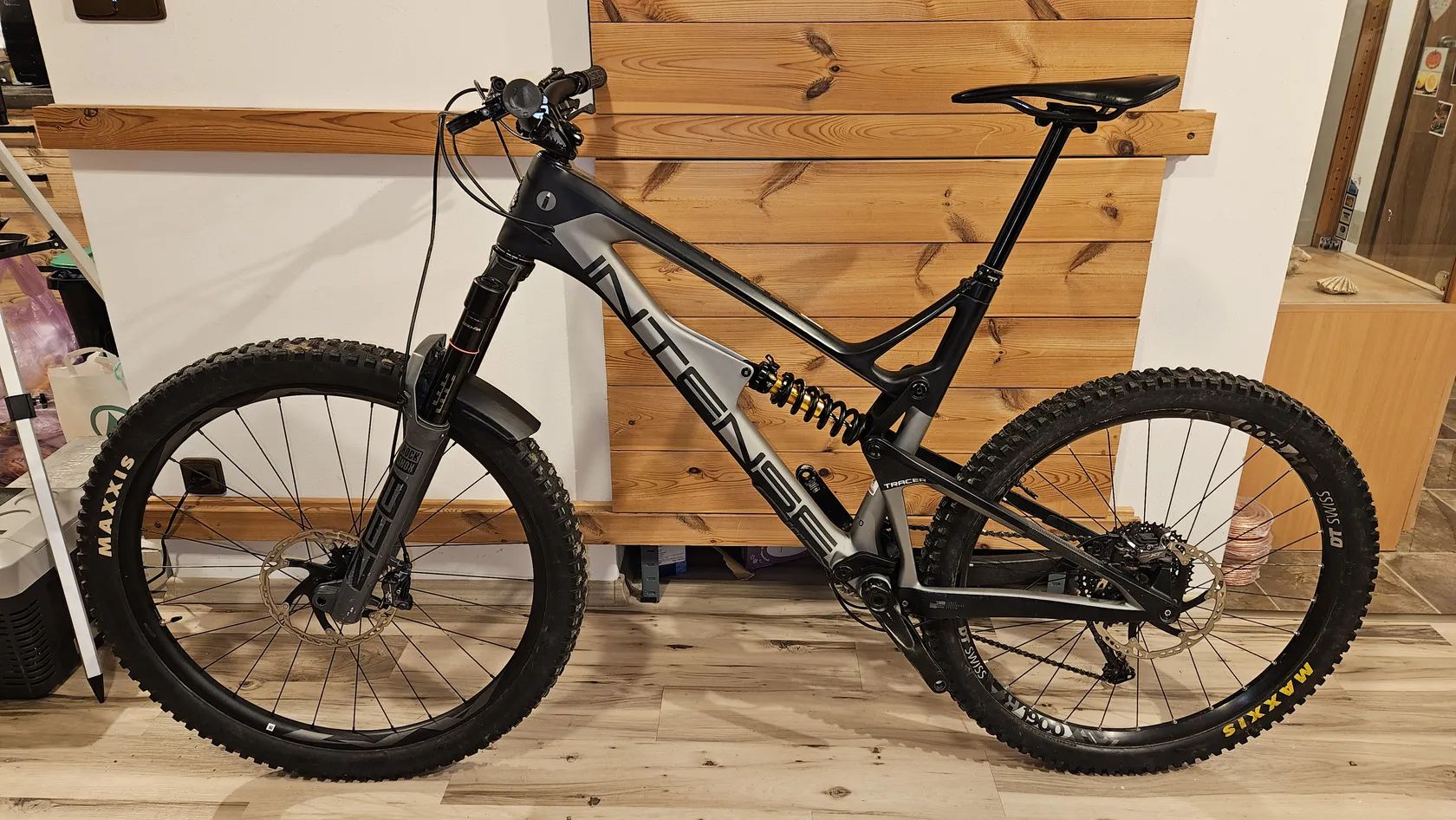 Intense Tracer 275 – enduro / all-mountain karbonový celoodpružený rám, původně 27,5", zde přestavěné na mullet (přední větší kolo).