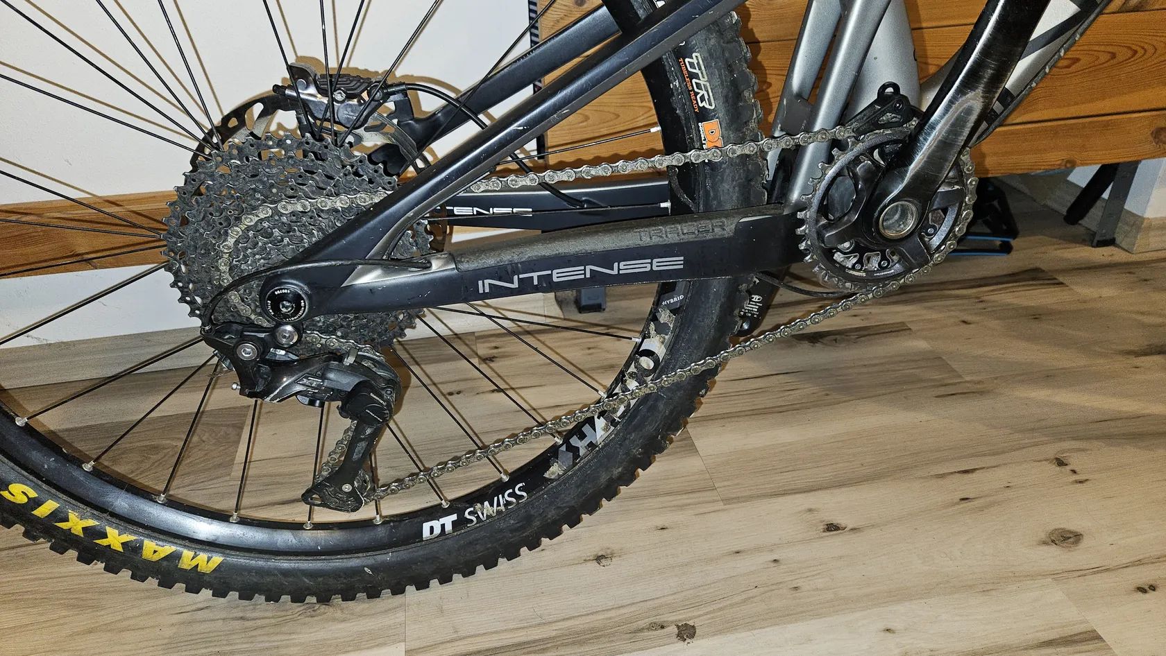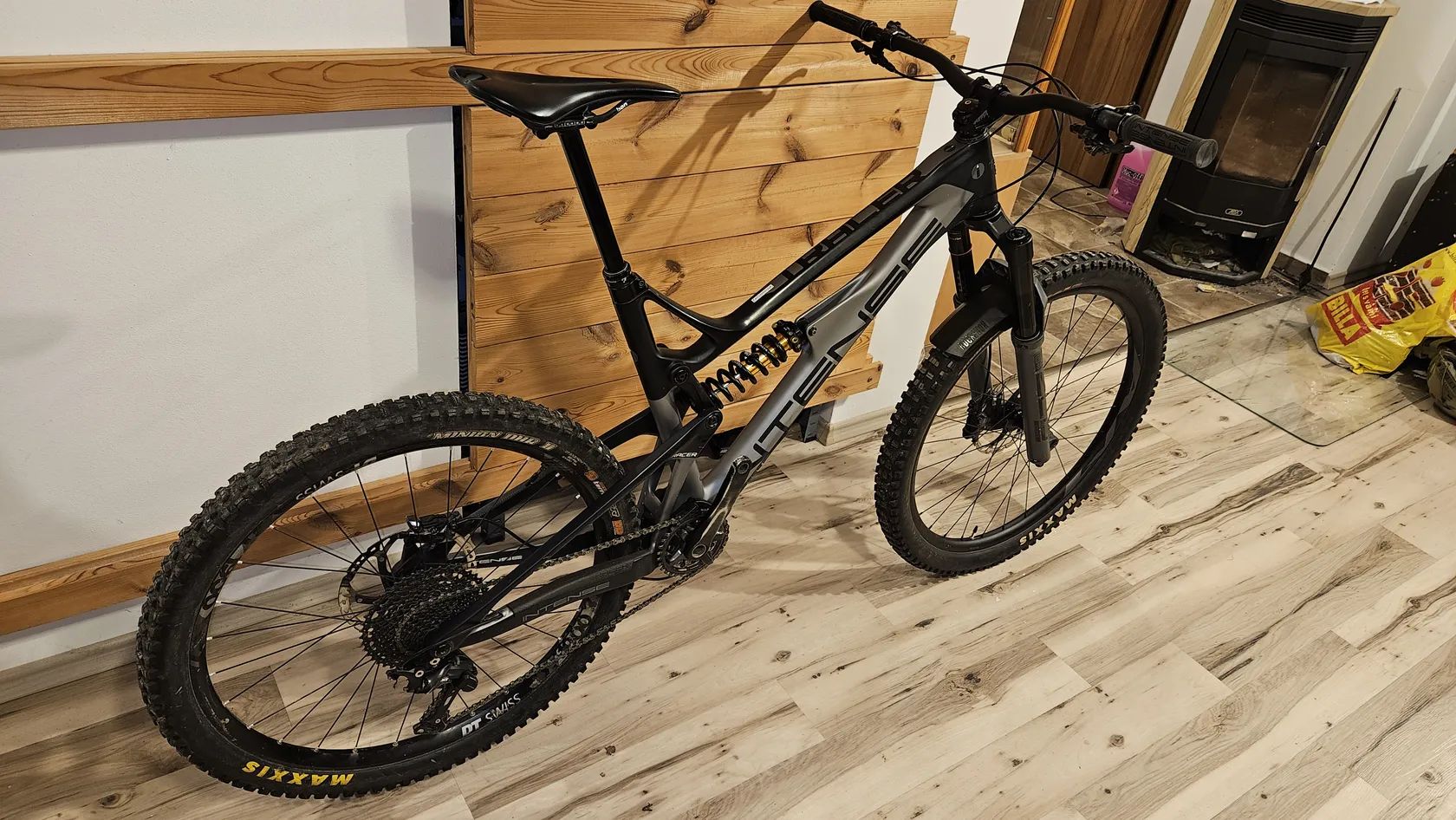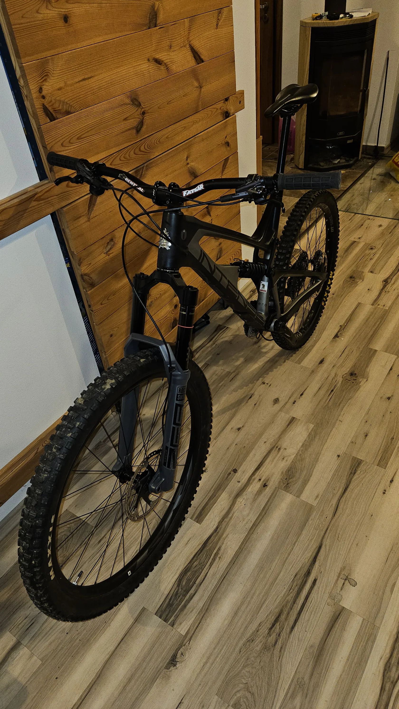 Celkem lehke enduro, 15.5 kg s DD plastema, vlozkou a pruzinou. Predelane na mullet. Vidlice Zeb ultimate 160mm, tlumic Cane Creek Db coil 165mm, prehazka 11s shimano xt, brzdy shimano xt 203mm, teleskopka Fox transfer 200mm(kupovana 6/2025). Kolo ma mnozstvi provoznich sramu, profesionalne opravenou prasklinu na zadni stavbe a praskly konus pod sroubem zadni osy (bez vlivu na funkcnost, lze koupit novy, nebo predelat na klasickou osu). Pri rychlem a solidnim jednani pridam novy retez, brzd. desticky, brzd. hadicku a zanovni Ice tech kotouc 1,7mm.