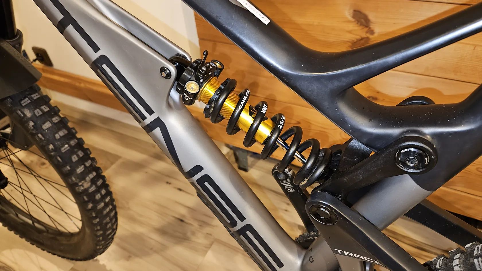 Tlumič: Cane Creek DB Coil 165 mm – pružinový tlumič, důraz na citlivost a stabilitu v těžkém terénu.