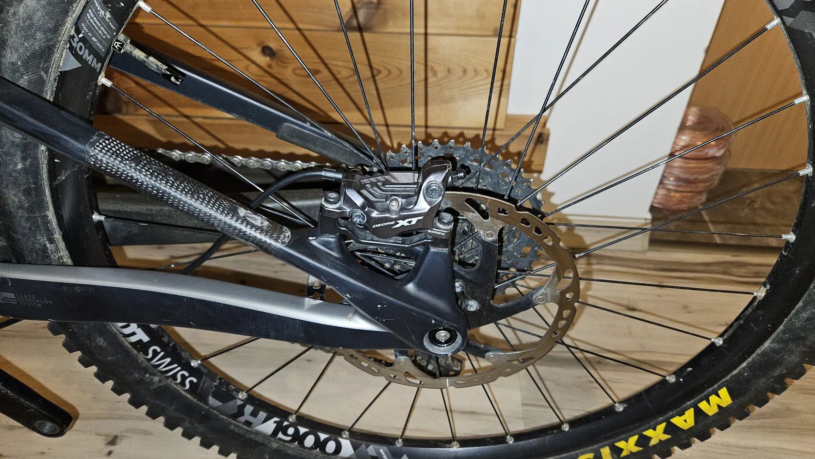 Brzdy: Shimano XT s kotouči 203 mm – silný brzdný účinek pro sjezdy.