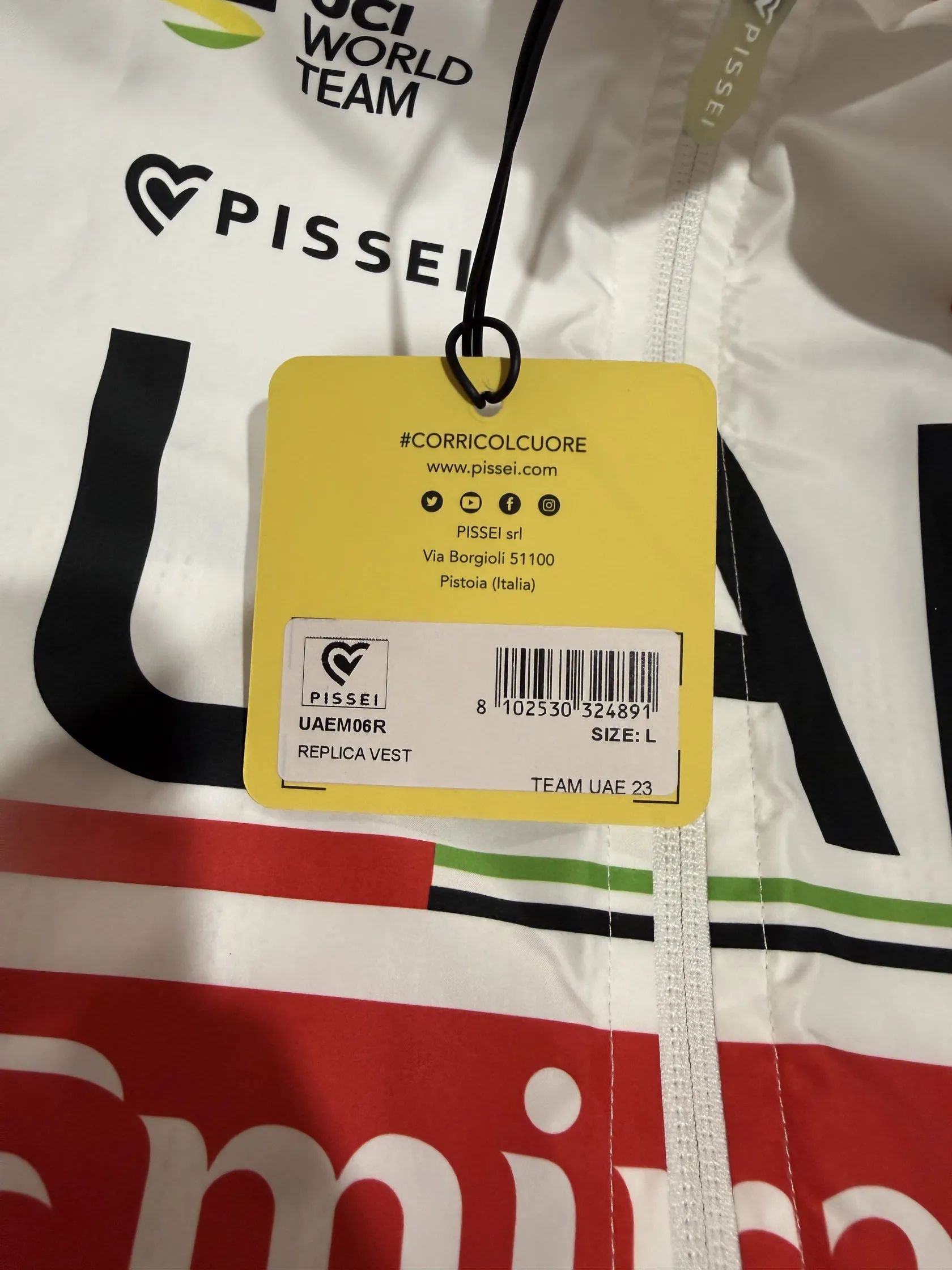 Profi vesta UAE Team Emirates – Velikost L (Pissei) Prodám špičkovou cyklistickou vestu v designu nejlepšího týmu světa UAE Team Emirates, za který jezdí fenomén Tadej Pogačar. Nejde o žádnou levnou napodobeninu z tržnice, ale o originální kousek od prémiové italské značky Pissei.