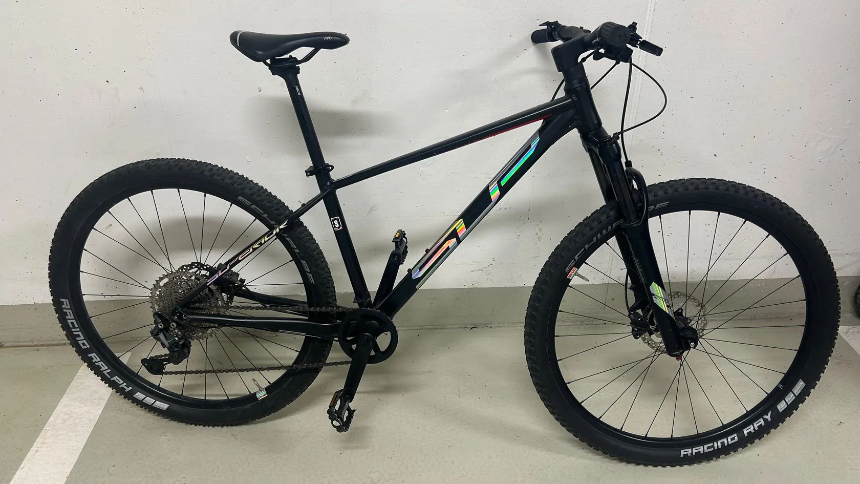 - Kola: 27,5" ráfky Stars J20S + pláště Schwalbe Racing Ralph / Racing Ray Performance 27.5x2.25" – rychlé XC obutí s dobrým gripem