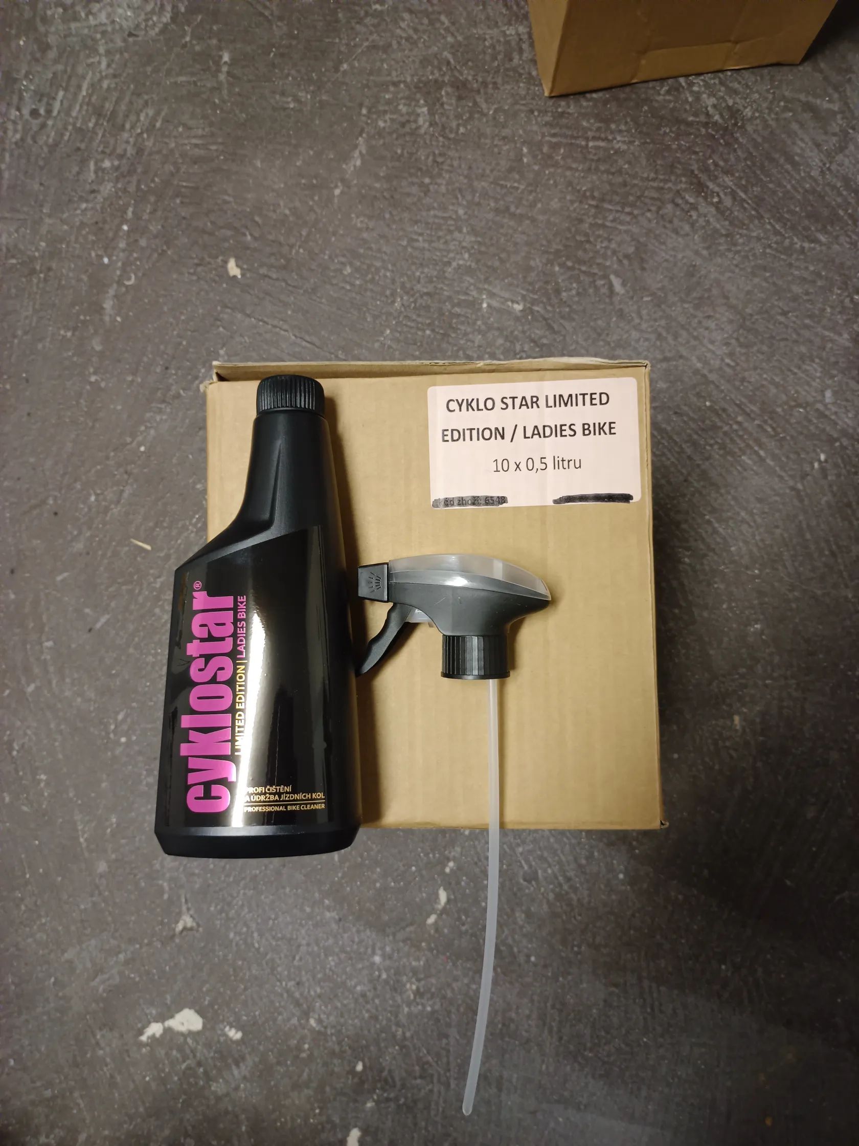 Krabice má 10 x 0.5 litrových balení včetně rozprašovače.