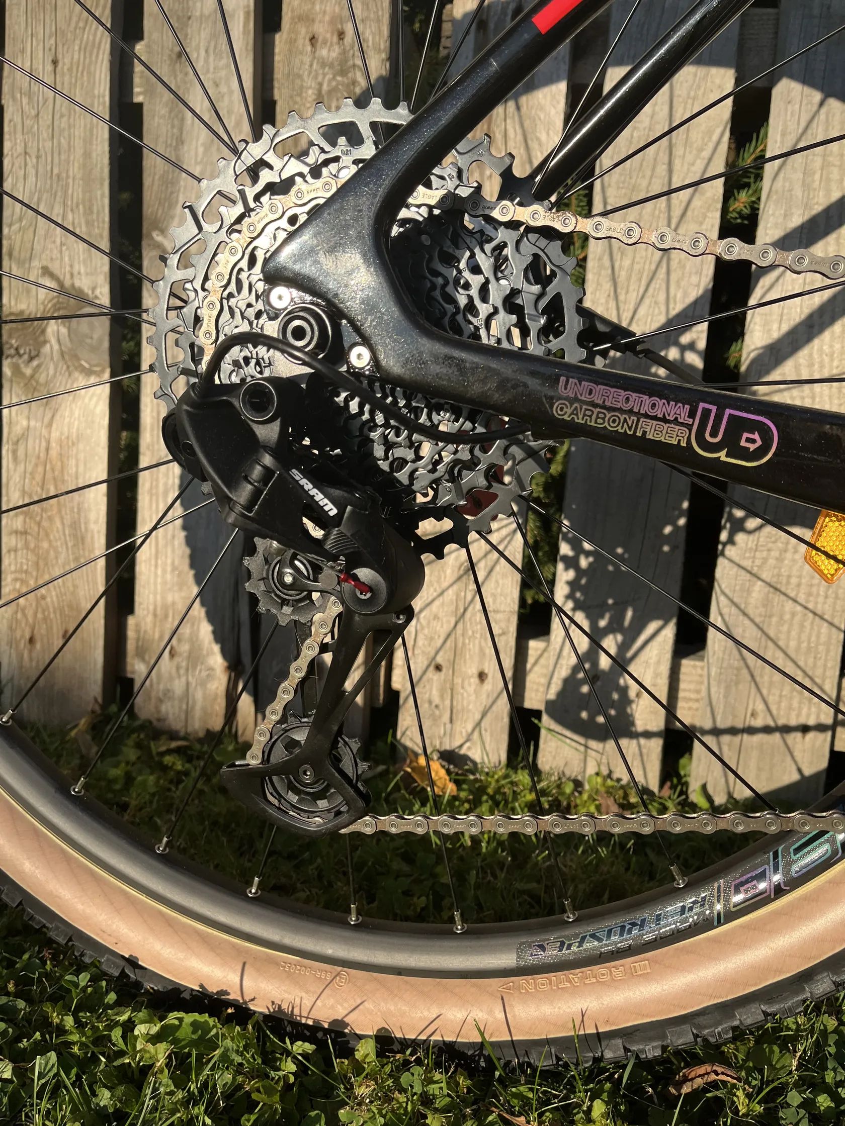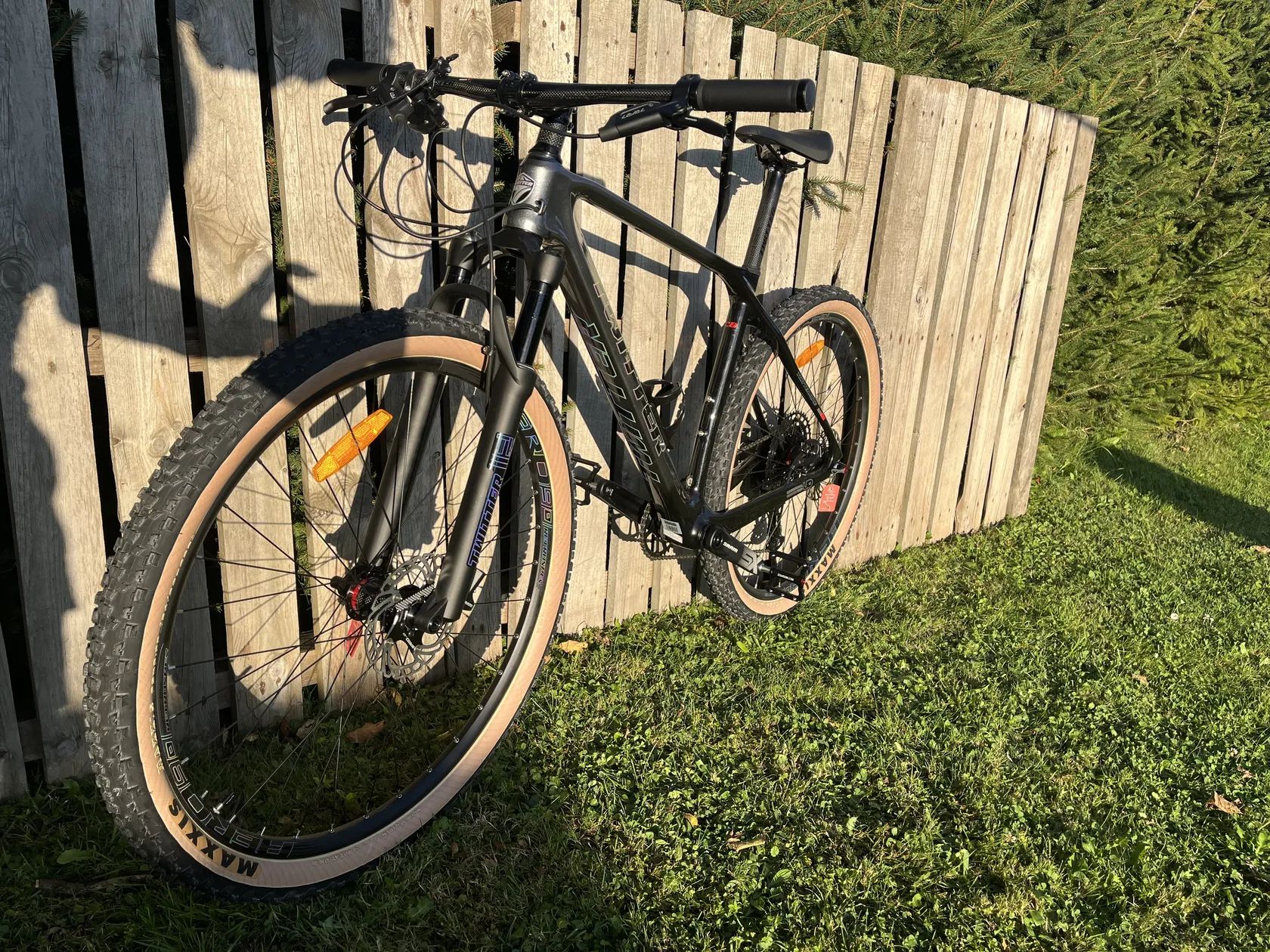 Popis dle webu: PREDATOR-D H M8100- 1x12 velká sada -Velikost rámu: L / 19. -Velikost kol: 29" -Rám: PREDATOR, karbon T900, XC-páčka, EPS, lanka, hydraulická osa 12*148 mm Boost, holografická barva laku -Vidlice: TW MgAl slitina, vzduchová, dálkové -Řídítka, představen, sedlovka: Carbon TWITTER ovládání, hydraulická osa 15*110 mm Boost -Kliky: SRAM SX, duté, 34T zubů -Přehazovačka: SRAM SX -Kazeta: 11-50T zubů -Střed: BSA68*24 mm, duté ložisko -Brzdy: SRAM LEVEL, plovoucí kotouč (160/160) -Náboje: RETEOSPEC 32 děr, pevná osa F15×110_R12×148 mm Boost -Ráfky: AERO 90 RETROSPEC -Pláště: MAXXIS ARDENT 29x2.25 -Váha:12,5kg
