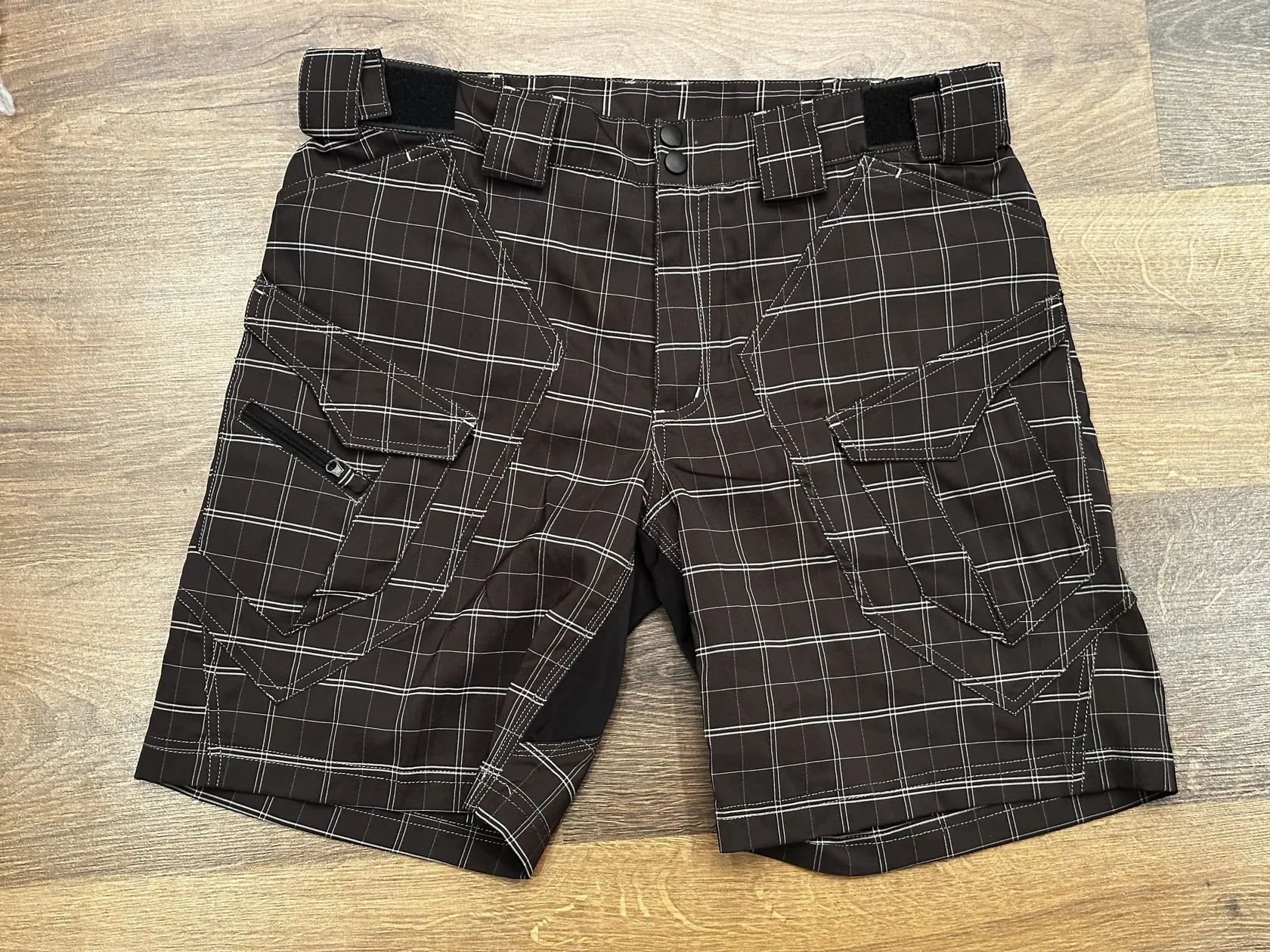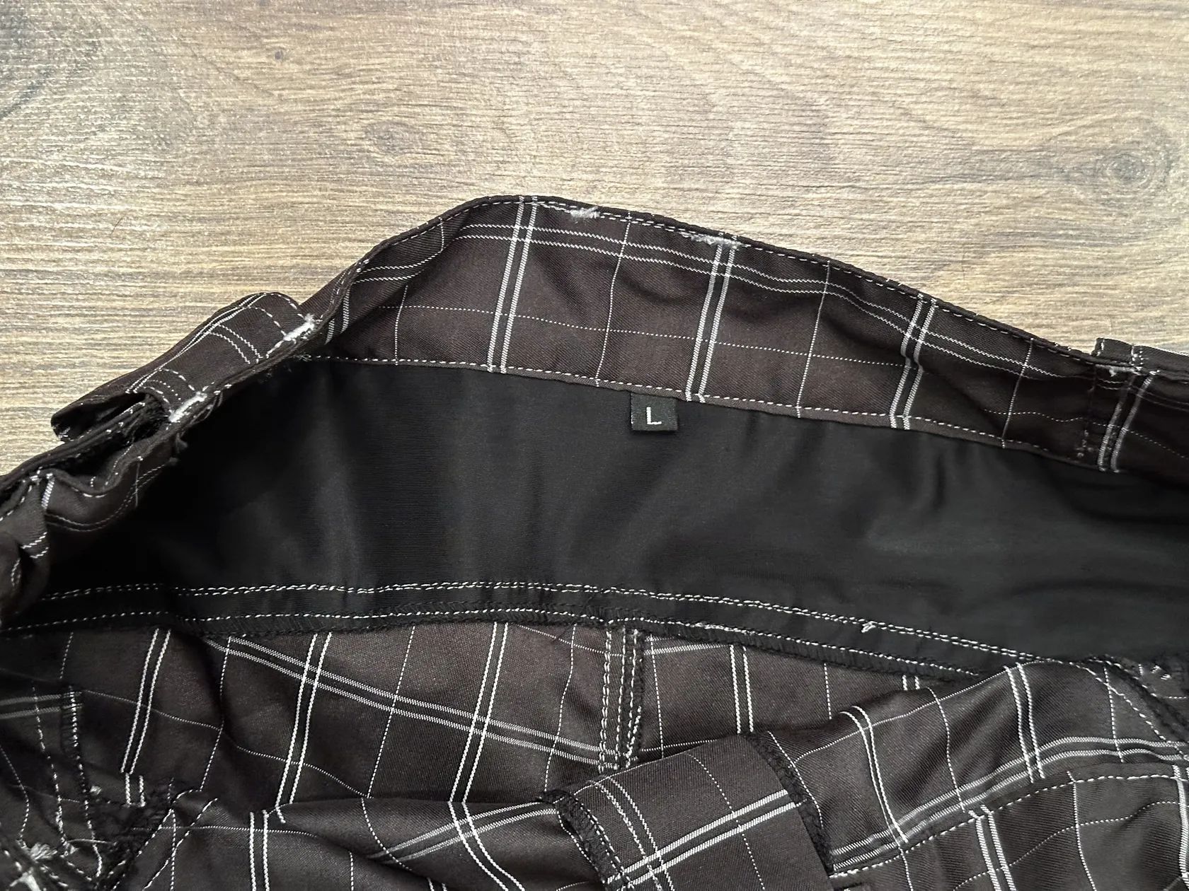 Prodám nové volné kraťasy v kostkovaném designu ve velikosti L. V pase mají cca 44cm a dají se zmenšit i zvětšit. Délka cca 48cm.