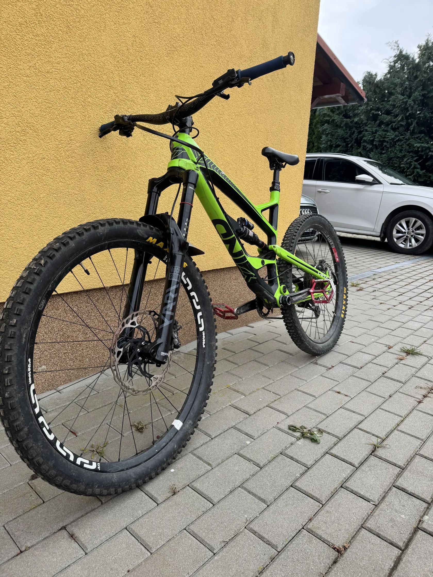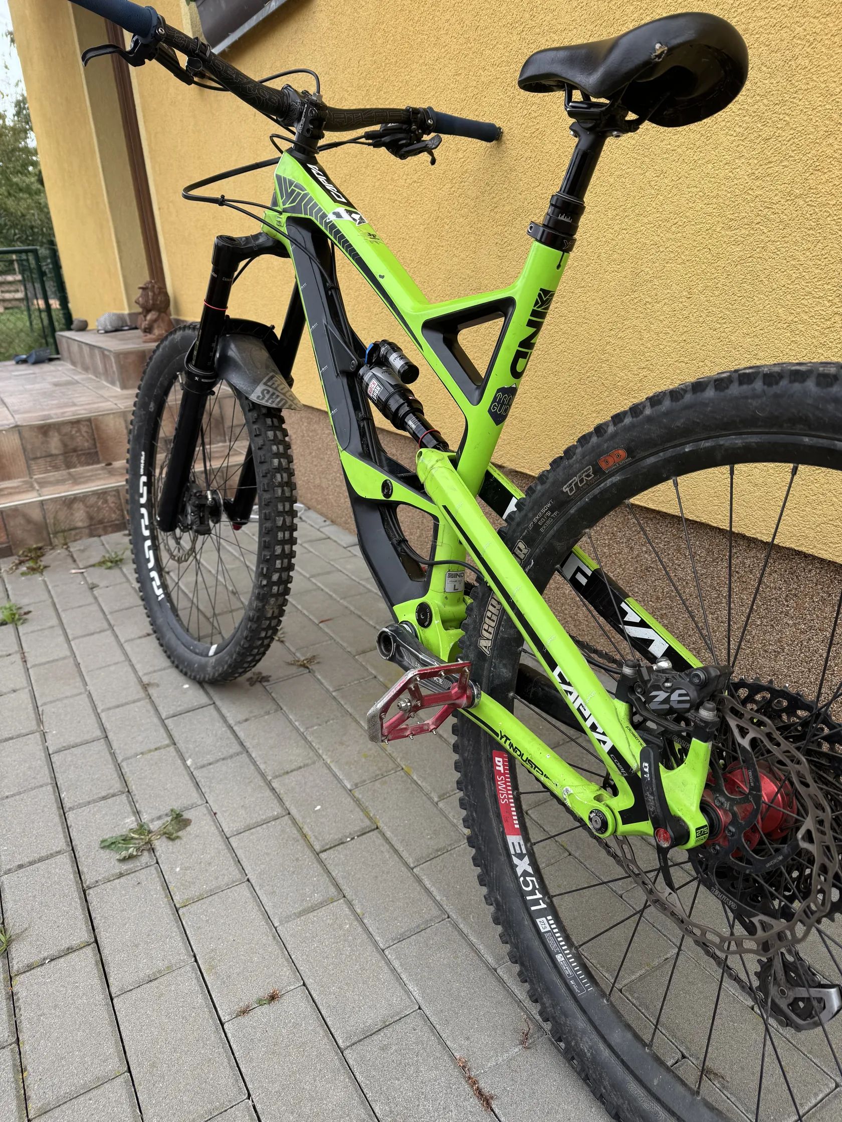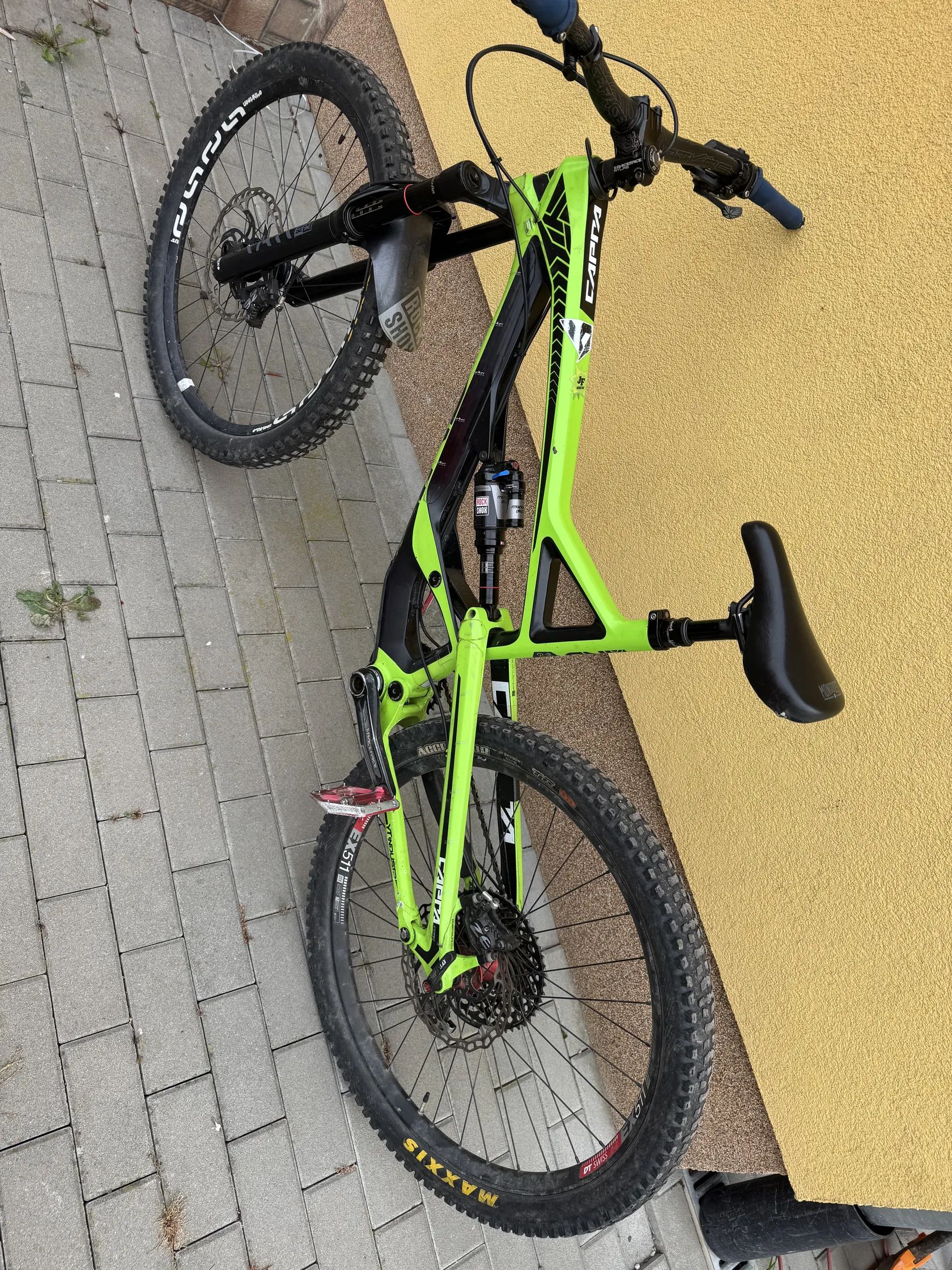 Porovávám karbonové enduro kolo YT Capra. Velikost rámu L a velikost kol 27.5, brzdy jsou od značky Shimano a kotouče o velikosti 220mm. Na kole je nová rok ježděna vidlice RockShox Yari RC o velikosti zdvihu 170-180mm, zadní tlumič je též od RockShox deluxe 160mm. Na kole je nainstalovaný bar-spin systém a kolo ma dvanácti převodovou Shimano přehazovačku. Na kole jsou drobné oděrky ale jinak poslouží krásně bez problému. Rychlé jednání dohoda jistá.
