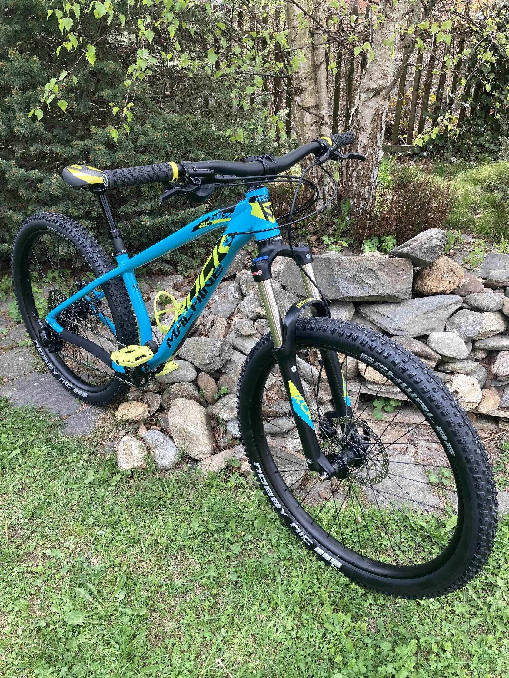 Prodám juniorský hardtail s enduro/trail geometrii značky Rock Machine, model Blizz 40-27+. Velikost rámu - 14” (145-164cm).