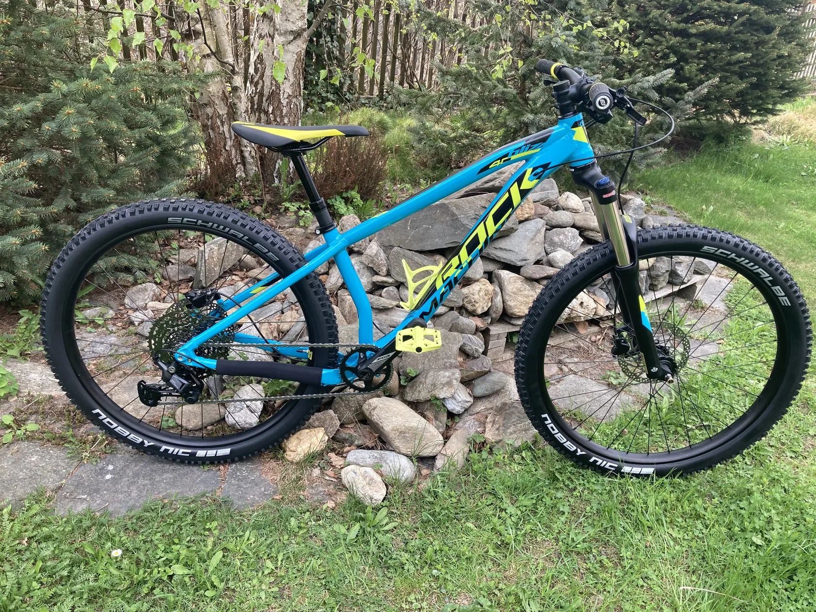 • Pláště: Schwalbe Nobby Nic 27,5"x2.4 – univerzální trailový vzorek, dobrý záběr v terénu.