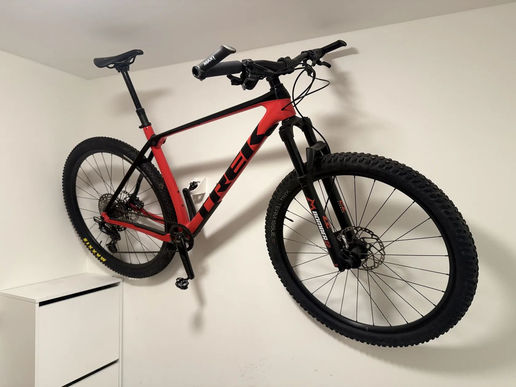 Prodám zakázkově upravený karbonový hardtail Trek Procaliber 9.6 (2021) ve velikosti XL. Kolo prošlo zásadní přestavbou na moderní „Downcountry“ specifikaci a je technicky v lepším stavu než nové kolo z prodejny. Do kola bylo investováno cca 32 000 Kč v upgradech a 9 275 Kč velký servis. ✅ STAV „SEDNOUT A JEZDIT“ (Doložitelné servisem): Kolo má celkově najeto pouze 1270 km. Před 100 km (6,5 motohodinami), pravidelně servisováno a proveden velký generální servis v ceně 9 275 Kč (doložím stvrzenkou!) v Crab Cycles: • Kompletní repase vidlice. • Nová ložiska v předním i zadním náboji. • Přelisování ložisek a nové zapletení kol. • Nové brzdové destičky. • Nový zadní plášť. • Pro kupujícího to znamená nulové investice na několik sezón dopředu. 🚀 PRÉMIOVÝ TUNING (Vylepšení oproti sérii): Sériová 9.6 měla slabiny, toto kolo nemá žádnou. 1. Vidlice: Marzocchi Bomber Z2 120 mm (PC 16 500 Kč). Citlivá, tuhá „žehlička“, která posouvá kolo o třídu výš než sériový RockShox. 2. Kokpit: Kratší představec 60 mm + širší přední plášť 2,40" pro výrazně lepší ovladatelnost a stabilitu v terénu. 3. Teleskopická sedlovka: Bontrager Line Elite (150 mm) – nezbytnost pro moderní ježdění. 4. Brzdy: Shimano SLX + Kotouče SM-RT66 180 mm (reálný brzdný výkon, ne jako základní MT400). 5. Pohon: Převodník vyměněn za 32z (rychlejší na rovinkách, originál byl pomalý 30z). 6. Sedlo: Specialized Power Comp 143 mm (PC 2 800 Kč) – kupováno 2023. Kolo prodávám s tímto sedlem, ale přidám i původní Bontrager 130 mm. 7. Zadní plášť: Maxxis 2,20" (úplně nový, najeto 100 km). 8. Nášlapy a šlapky. ⚙️ Specifikace: • Rám: OCLV Mountain Carbon, IsoSpeed (tlumí vibrace), barva Radioactive Red / Trek Black. • Velikost: XL (ideální pro postavu cca 185–196 cm). • Řazení: Shimano XT/SLX (1x12). 💰 Cena: 49 000 Kč Cena je pevná vzhledem k proinvestovaným částkám. Kupujete vyladěný stroj s jasnou historií, ne „vybydlenou“ bazarovku.