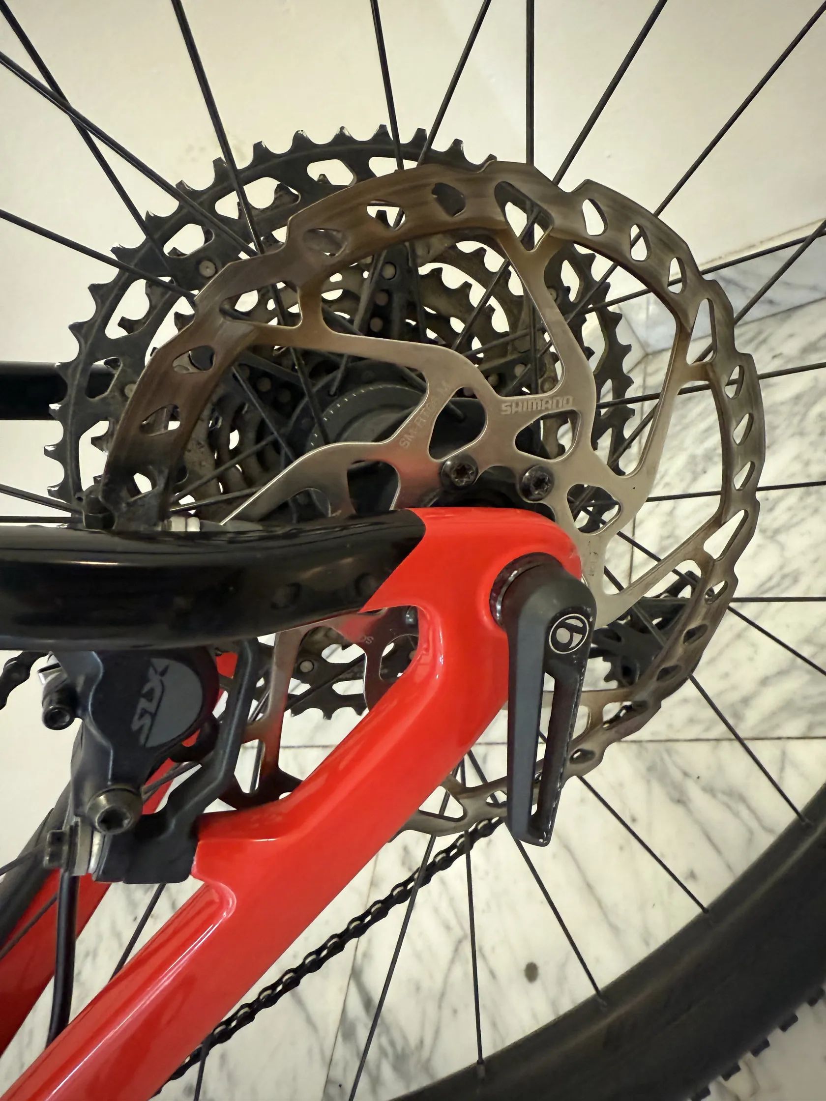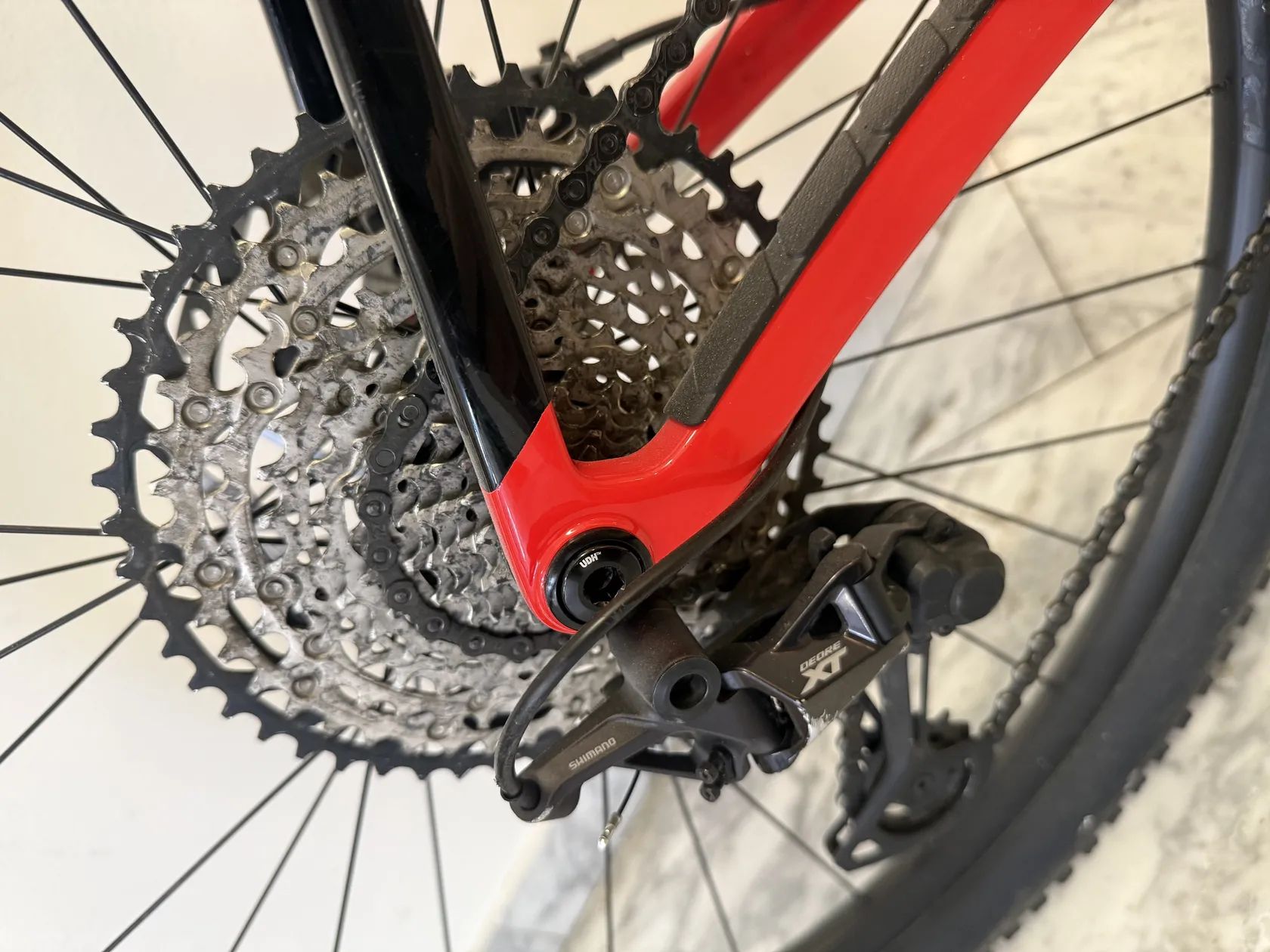 Pohon: Shimano XT/SLX 1x12 – spolehlivá sportovní sada, běžně používaná i na závodních kolech.